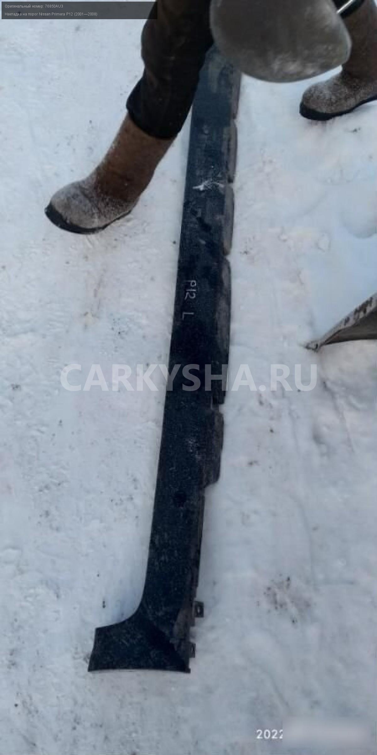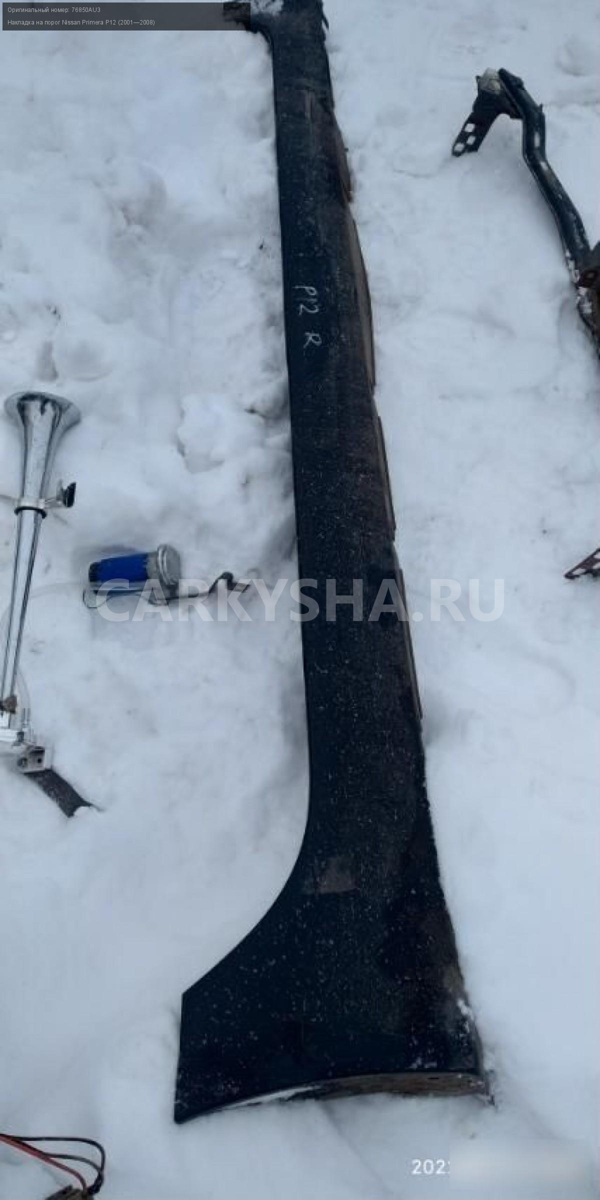 Nissan primera р12 накладки порогов\nАртикул: 1601\n\nОриг. номер: 76850AU3\nПроизводитель: NISSAN\nПримечание:Nissan primera р12 накладки порогов,цена за пару.НАЛИЧИЕ ЗАПЧАСТИ УТОЧНИТЕ ПО ТЕЛЕФОНУ ИЛИ В СООБЩЕНИЯХ,б/у, а так же множество авто в разборе, работаем с регионами отправка тк, выкуп авто после дтп по всей России, отправка тк осуществляется после 100% оплаты, наложенным платежом не работаем, стоимость доставки не рассчитываем\n\nМарка: Nissan\nМодель: Primera P12 (2001—2008)\nКузов тип: Универсал\nОбъем: 1.6\nТопливо: Бензин\nКоробка: Механика\nСовместимости: Nissan Primera P12 (2001—2008) 1.6 MT (109 л.с.)\nСовместимость:
