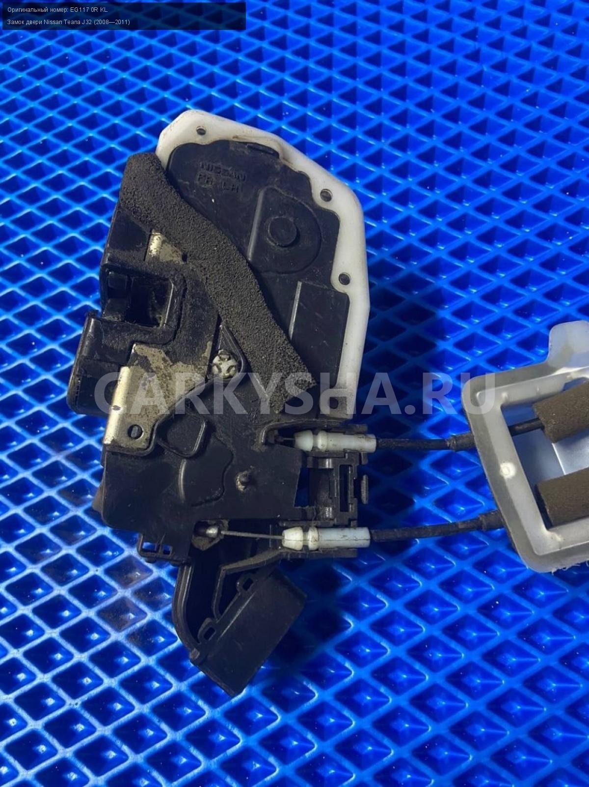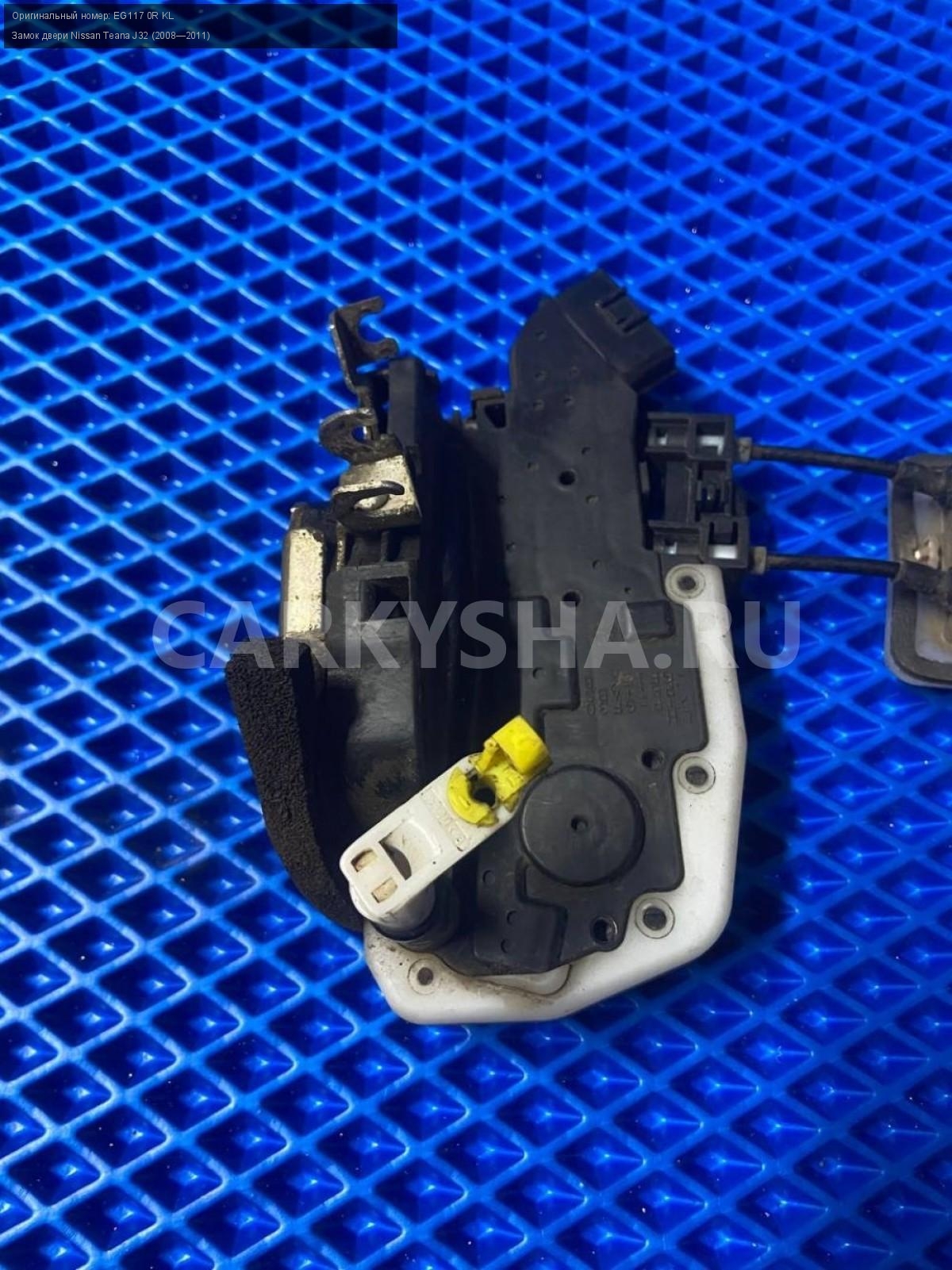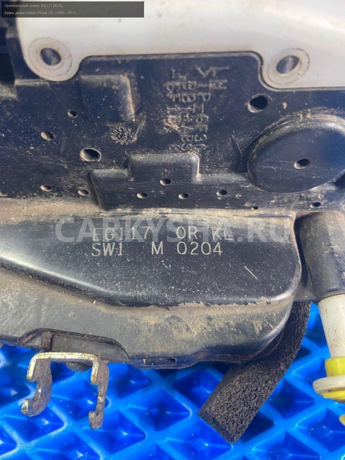 Nissan Teana J32, замок двери передней левой.\nАртикул: 7336\n\nОриг. номер: EG117 0R KL\nПроизводитель: NISSAN\nПримечание:Ниссан Тиана J32, замок двери передней левой, (левый руль) , б/у. \n\nМарка: Nissan\nМодель: Teana J32 (2008—2011)\nГод выпуска: 2010\nКузов тип: Седан\nДвигатель номер: VQ35DE\nМодель двигателя: инжектор\nОбъем: 3.5\nТопливо: Бензин\nКоробка: Вариатор\nЦвет: B20-BLUEISH BLACK\nПраво/Лево: Лево\nПеред/Зад: Перед\nСовместимости: Nissan Teana J32 (2008—2011) 3.5 CVT (249 л.с.)\nСовместимость: