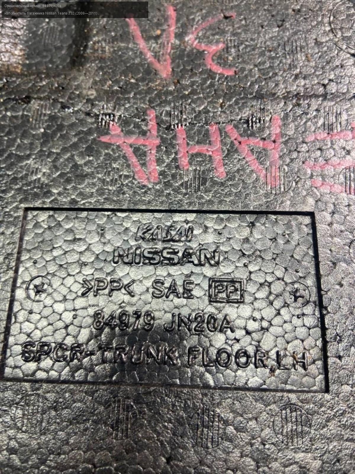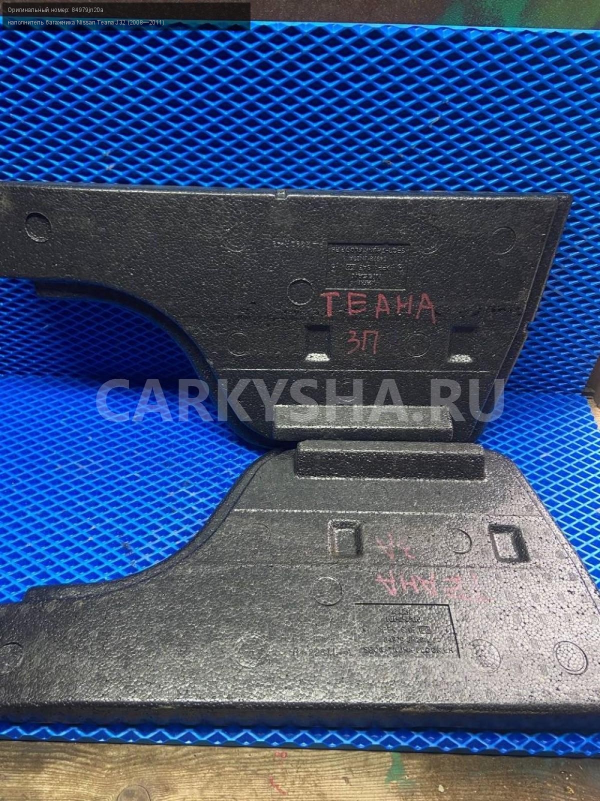 Nissan Teana J32 Наполнитель багажника, пара.\nАртикул: 7365\n\nОриг. номер: 84979jn20a\nПроизводитель: NISSAN\nПримечание:Ниссан Тиана H32, наполнитель багажника, цена за пару, б/у. \n\nМарка: Nissan\nМодель: Teana J32 (2008—2011)\nГод выпуска: 2010\nКузов тип: Седан\nДвигатель номер: VQ35DE\nМодель двигателя: инжектор\nОбъем: 3.5\nТопливо: Бензин\nКоробка: Вариатор\nЦвет: B20-BLUEISH BLACK\nСовместимости: Nissan Teana J32 (2008—2011) 3.5 CVT (249 л.с.)\nСовместимость: