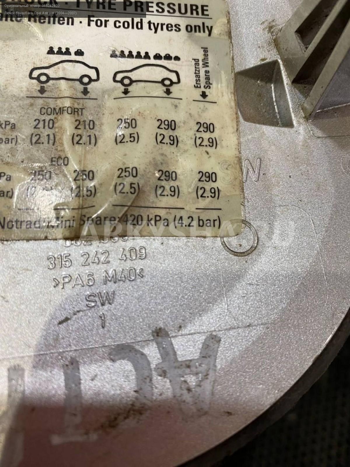 Opel Astra H, лючок бензобака.\nАртикул: 3977\n\nОриг. номер: 315242409\nПроизводитель: OPEL\nПримечание:Опель Астра Н, лючок бензобака , б/у. Цена за штуку. \n\nМарка: Opel\nМодель: Astra H (2004—2007)\nСовместимости: Opel Astra H (2004—2007)\nСовместимость: