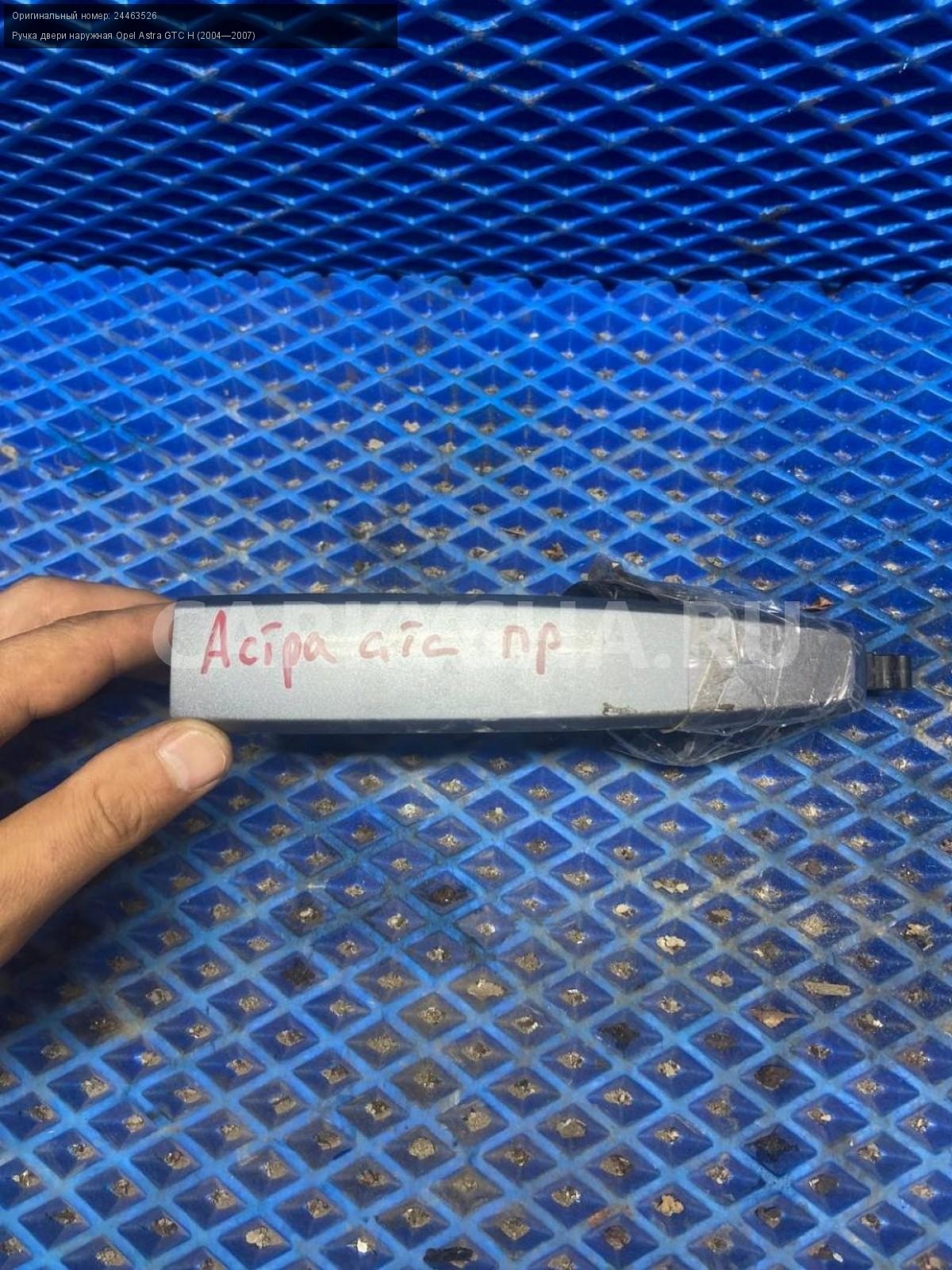Opel Astra GTC H, ручка двери передняя правая.\nАртикул: 8231\n\nОриг. номер: 24463526\nПроизводитель: OPEL\nПримечание:Опель Астра Н GTC, ручка двери передняя правая, б/у. \n\nМарка: Opel\nМодель: Astra GTC H (2004—2007)\nГод выпуска: 2007\nКузов тип: Купе\nДвигатель номер: Z18XER\nМодель двигателя: инжектор\nОбъем: 1.8\nТопливо: Бензин\nКоробка: Автомат\nЦвет: Серый\nПраво/Лево: Право\nПеред/Зад: Перед\nСовместимости: Opel Astra GTC H (2004—2007) 1.8 AT (140 л.с.)\nСовместимость: