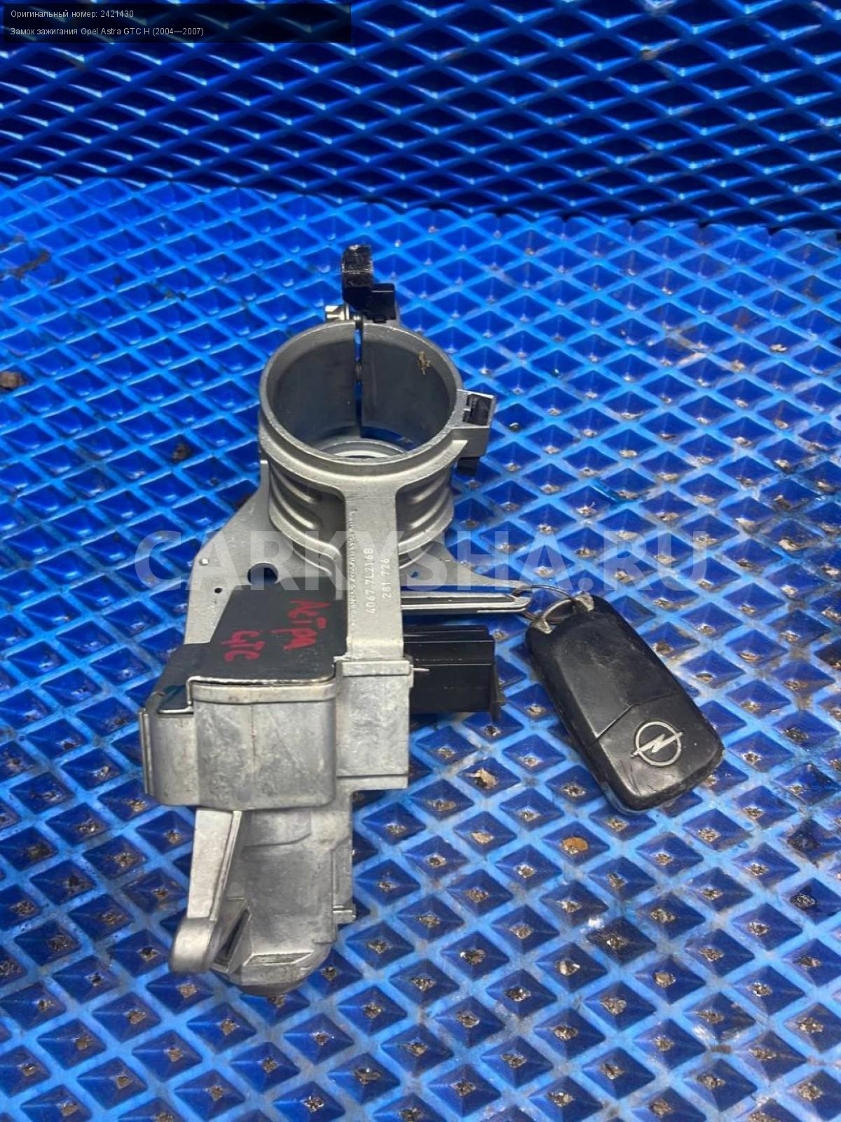 Opel Astra GTC H, замок зажигания.\nАртикул: 8098\n\nОриг. номер: 2421430\nПроизводитель: OPEL\nПримечание:Опель Астра H GTC, замок зажигания ( сломан ключ), б/у. \n\nМарка: Opel\nМодель: Astra GTC H (2004—2007)\nГод выпуска: 2007\nКузов тип: Купе\nДвигатель номер: Z18XER\nМодель двигателя: инжектор\nОбъем: 1.8\nТопливо: Бензин\nКоробка: Автомат\nЦвет: Серый\nСовместимости: Opel Astra GTC H (2004—2007) 1.8 AT (140 л.с.)\nСовместимость: