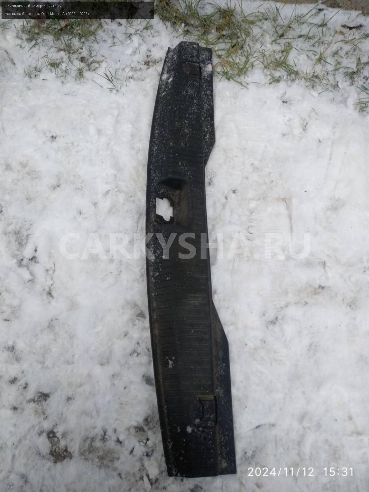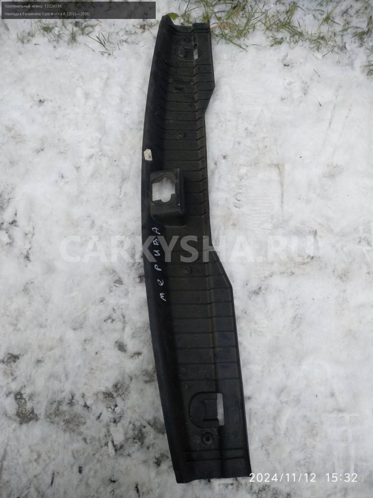 Opel Meriva A , замковая панель багажника.\nАртикул: 6260\n\nОриг. номер: 13224536\nПроизводитель: OPEL\nПримечание:Опель Мерива А, замковая панель багажника (накладка багажника) , б/у. \n\nМарка: Opel\nМодель: Meriva A (2003—2006)\nСовместимости: Opel Meriva A (2003—2006)\nСовместимость: