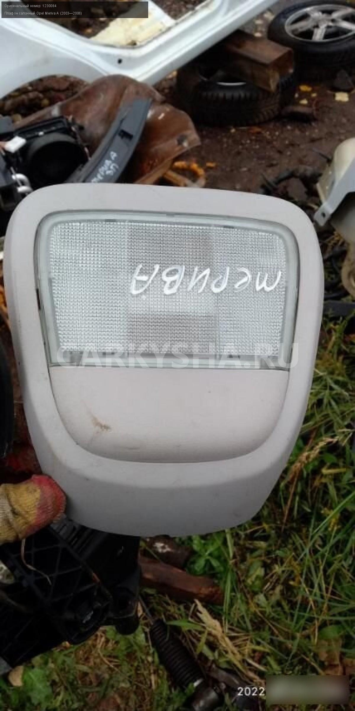 Опель Мерива А плафон салона\nАртикул: 216\n\nОриг. номер: 1230084\nПроизводитель: OPEL\nПримечание:Опель Мерива А плафон салона.НАЛИЧИЕ ЗАПЧАСТИ УТОЧНИТЕ ПО ТЕЛЕФОНУ ИЛИ В СООБЩЕНИЯХ,б/у, а так же множество авто в разборе, работаем с регионами отправка тк, выкуп авто после дтп по всей России, отправка тк осуществляется после 100% оплаты, наложенным платежом не работаем, стоимость доставки не рассчитываем\n\nМарка: Opel\nМодель: Meriva A (2003—2006)\nКузов тип: Минивэн\nОбъем: 1.2\nТопливо: Дизель\nКоробка: Механика\nСовместимости: Opel Meriva A (2003—2006) 1.2 CDTi MT (70 л.с.)\nСовместимость: