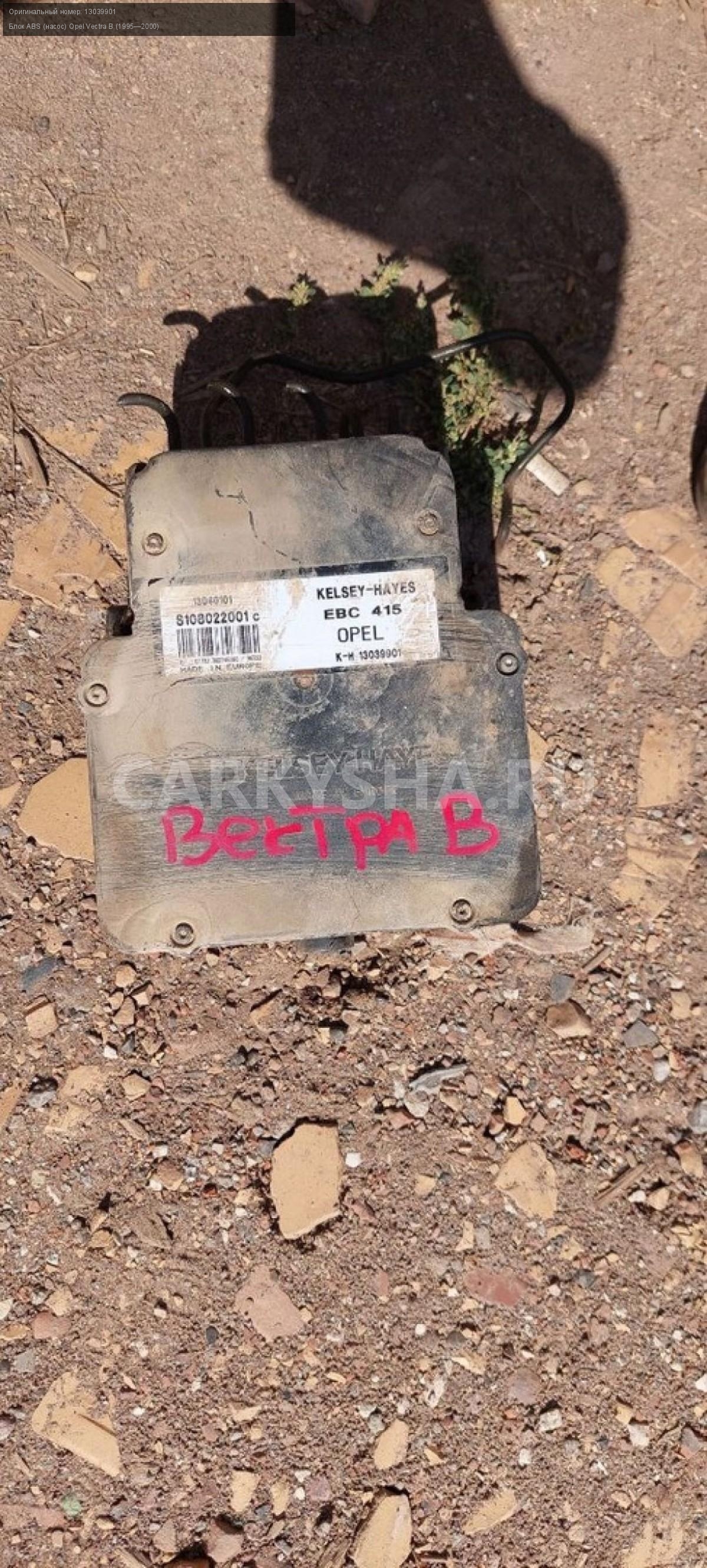 Opel Vectra B, блок ABS\nАртикул: 3132\n\nОриг. номер: 13039901\nПроизводитель: OPEL\nПримечание:Опель Вектра Б, блок абс, б/у\n\nМарка: Opel\nМодель: Vectra B (1995—2000)\nСовместимости: Opel Vectra B (1995—2000) 1.6 MT (100 л.с.)\nСовместимость: