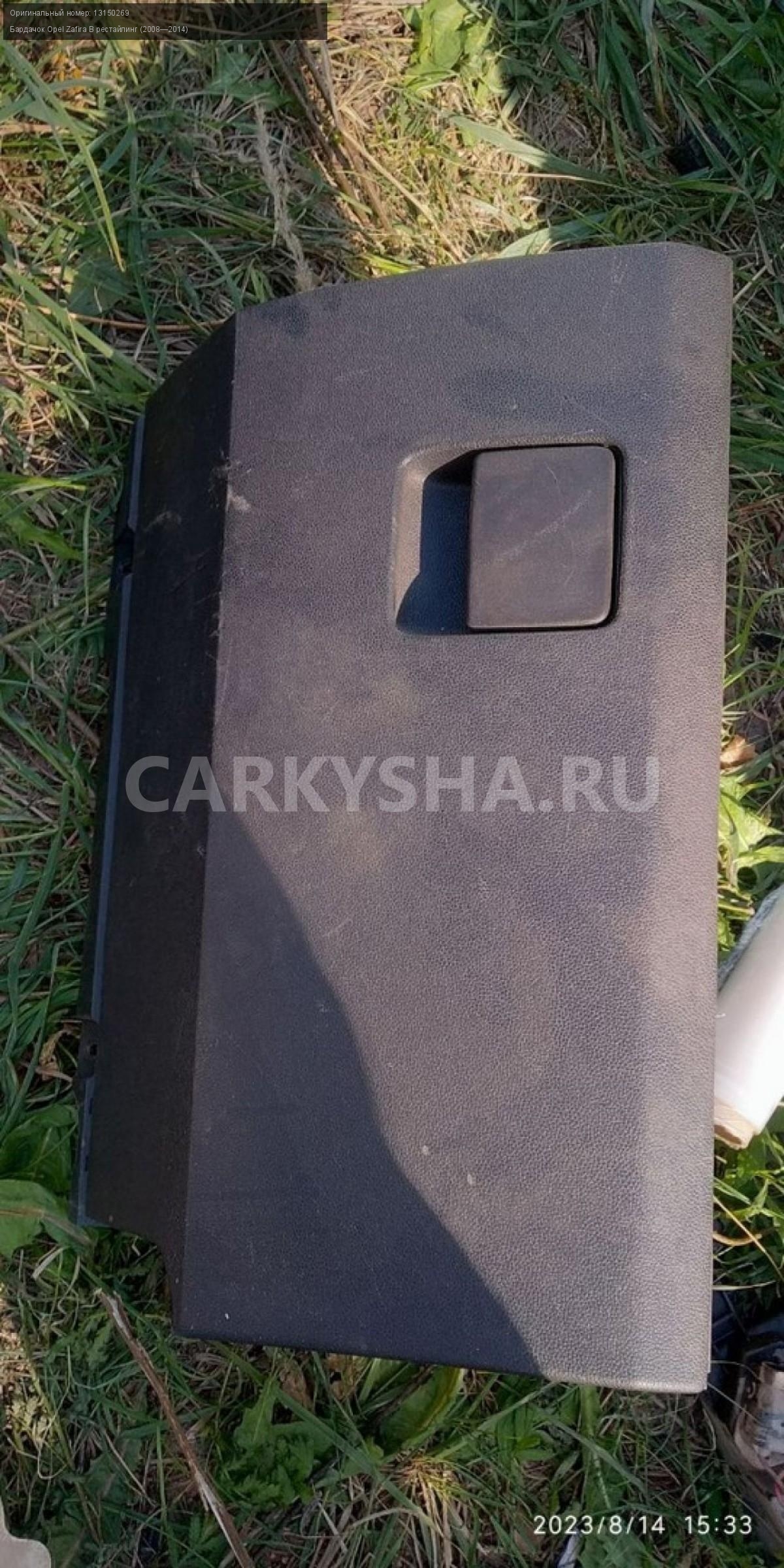Opel Zafira B рестайлинг, бардачок\nАртикул: 2873\n\nОриг. номер: 13150269\nПроизводитель: OPEL\nПримечание:Опель Зафира Б рестайлинг, бардачок , б/у\n\nМарка: Opel\nМодель: Zafira B рестайлинг (2008—2014)\nГод выпуска: 2012\nКузов тип: Минивэн\nДвигатель номер: Z18XER\nМодель двигателя: инжектор\nОбъем: 1.8\nТопливо: Бензин\nКоробка: Механика\nЦвет: Белый\nСовместимости: Opel Zafira B рестайлинг (2008—2014) 1.8 MT (140 л.с.)\nСовместимость: