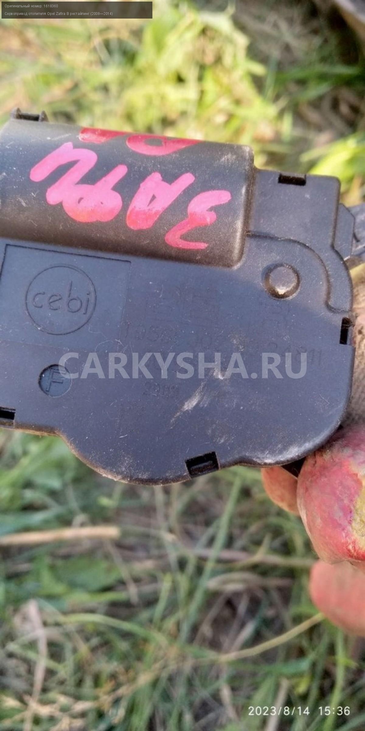 Opel Zafira B рест, сервопривод заслонки печки\nАртикул: 2892\n\nОриг. номер: 1618360\nПроизводитель: OPEL\nПримечание:Опель ЗафираБ рестайлинг, сервопривод заслонки печки, б/у\n\nМарка: Opel\nМодель: Zafira B рестайлинг (2008—2014)\nГод выпуска: 2012\nКузов тип: Минивэн\nДвигатель номер: Z18XER\nМодель двигателя: инжектор\nОбъем: 1.8\nТопливо: Бензин\nКоробка: Механика\nЦвет: Белый\nСовместимости: Opel Zafira B рестайлинг (2008—2014) 1.8 MT (140 л.с.)\nСовместимость: