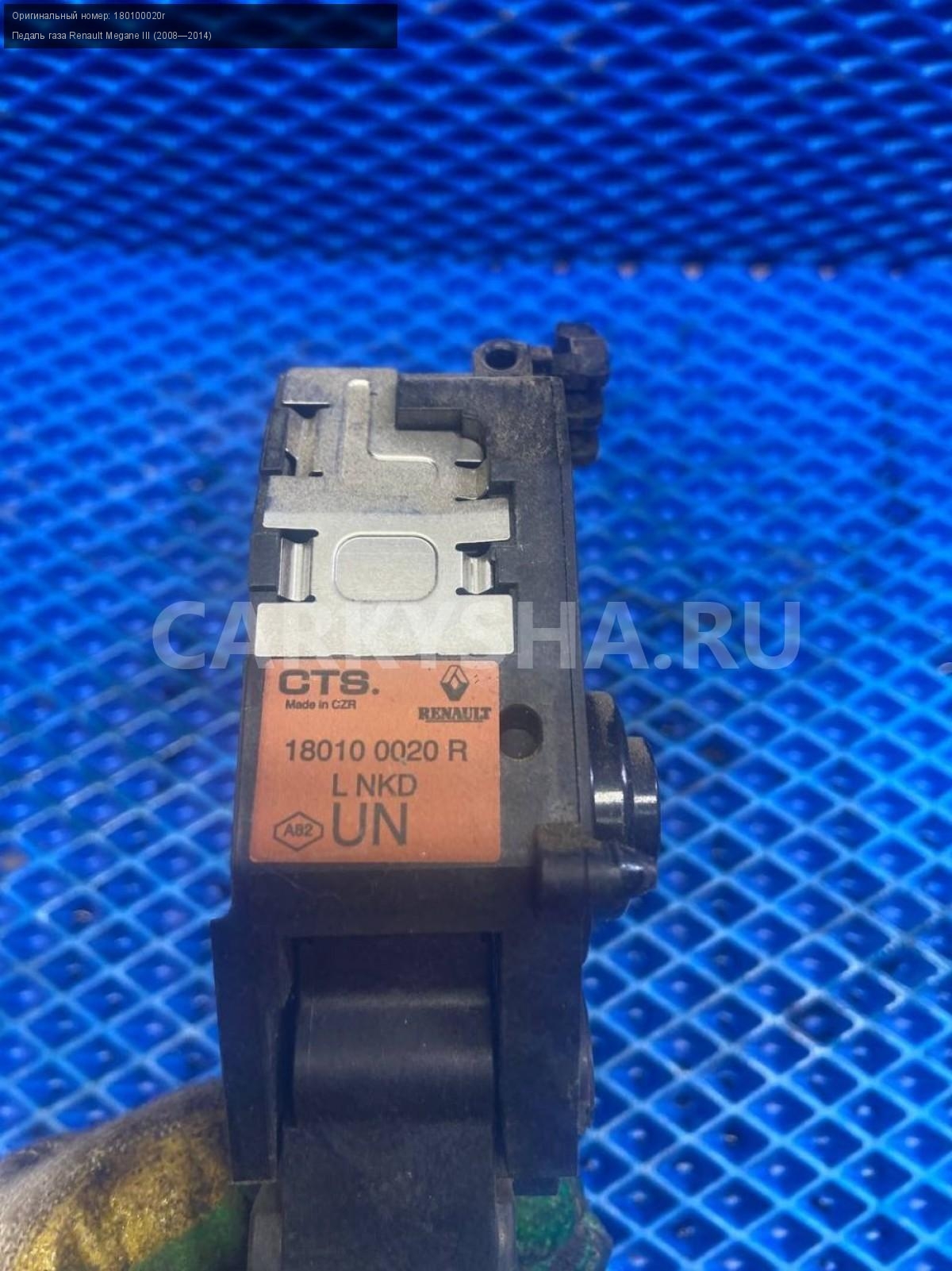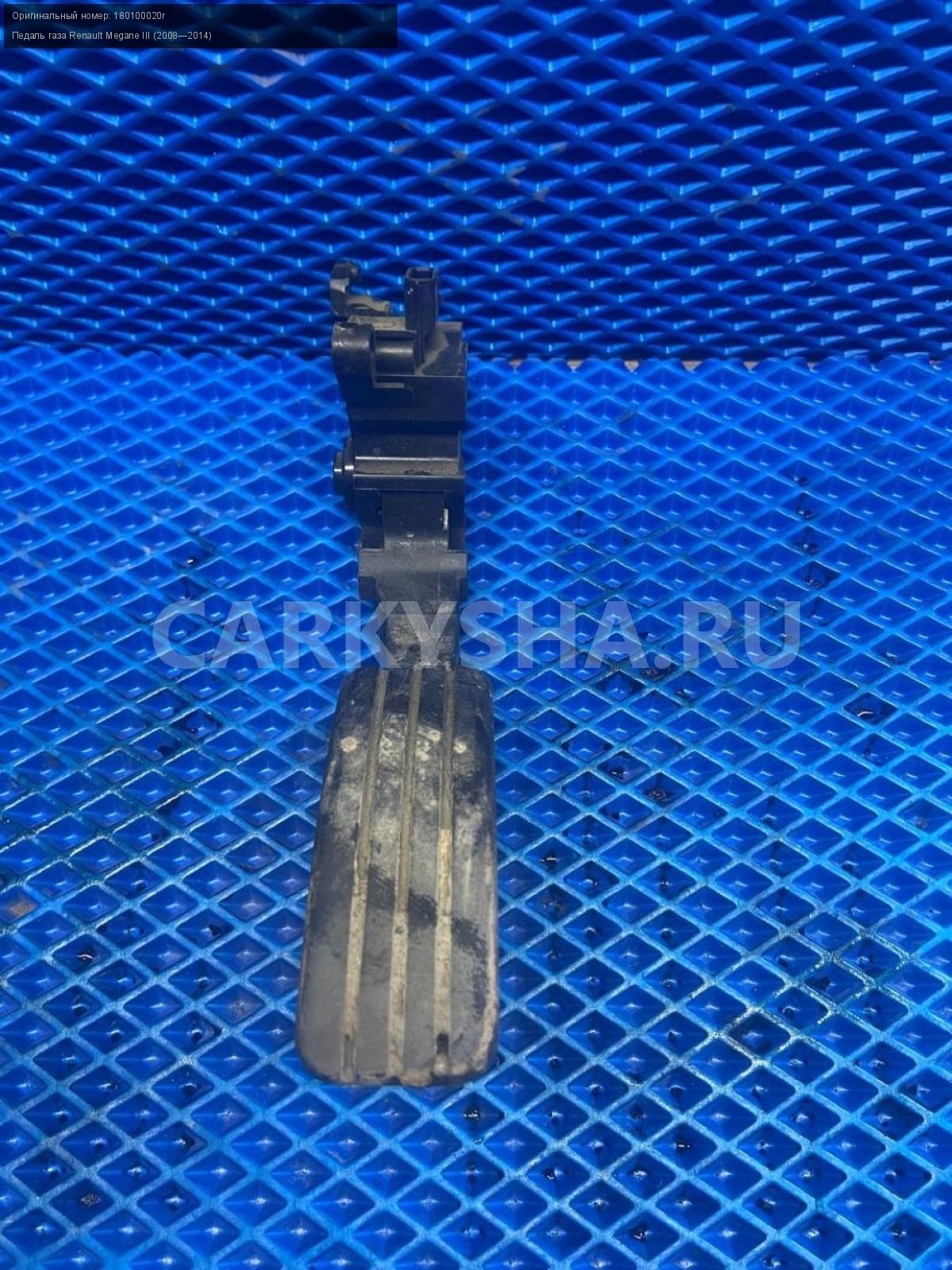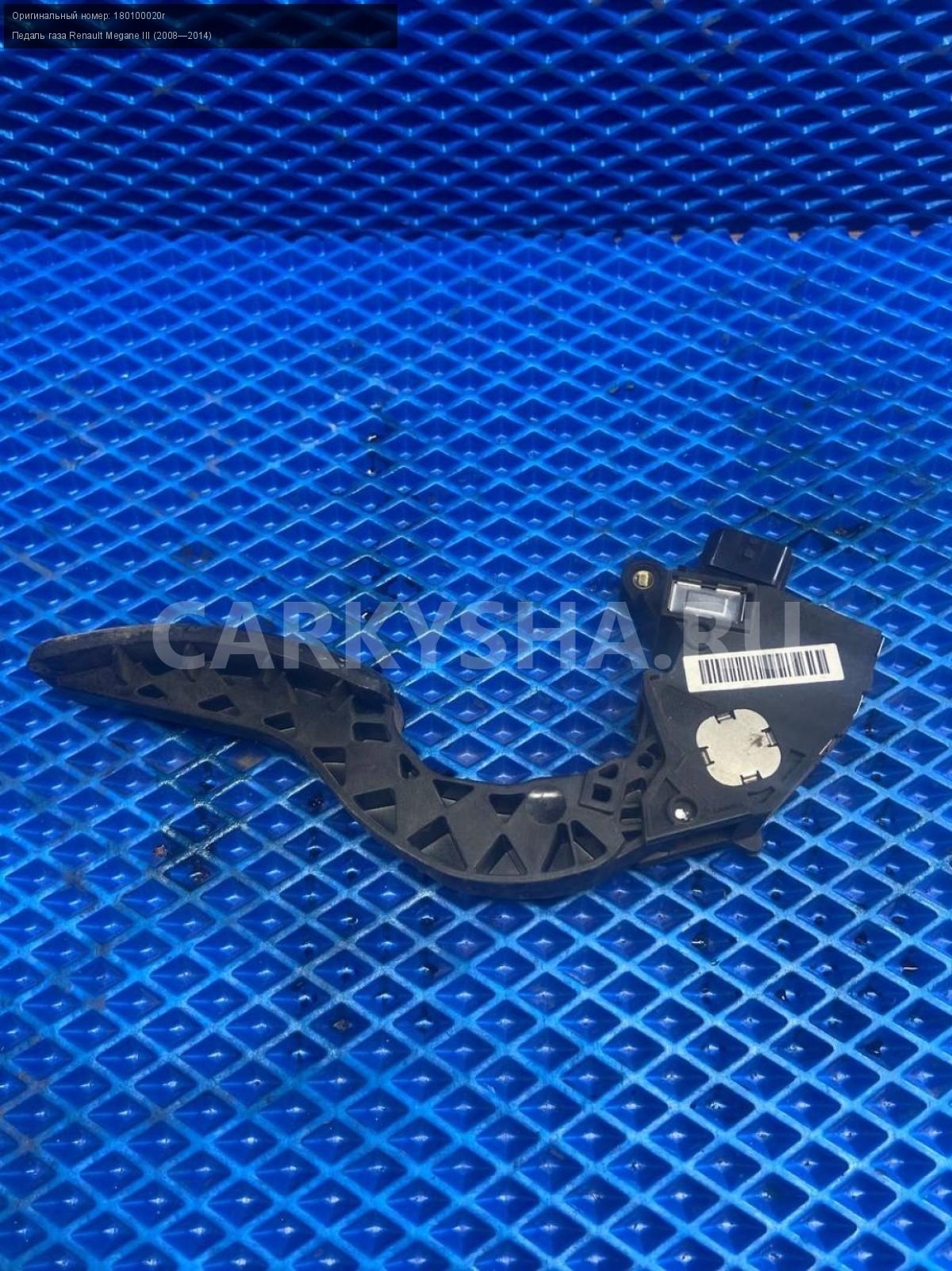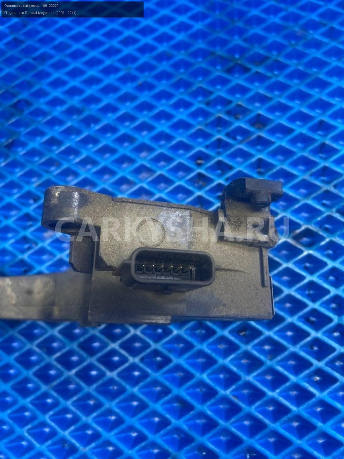 Renault Megane III, педаль газа.\nАртикул: 7545\n\nОриг. номер: 180100020r\nПроизводитель: RENAULT\nПримечание:Рено Меган 3, педаль газа, б/у. \n\nМарка: Renault\nМодель: Megane III (2008—2014)\nГод выпуска: 2011\nКузов тип: Хетчбэк\nДвигатель номер: K4MV838\nМодель двигателя: инжектор\nОбъем: 1.6\nТопливо: Бензин\nКоробка: Механика\nЦвет: Темно-Серый\nСовместимости: Renault Megane III (2008—2014) 1.6 MT (106 л.с.)\nСовместимость: