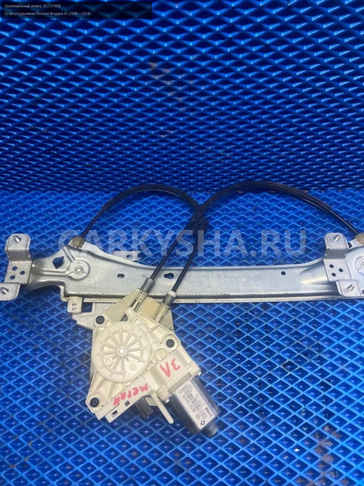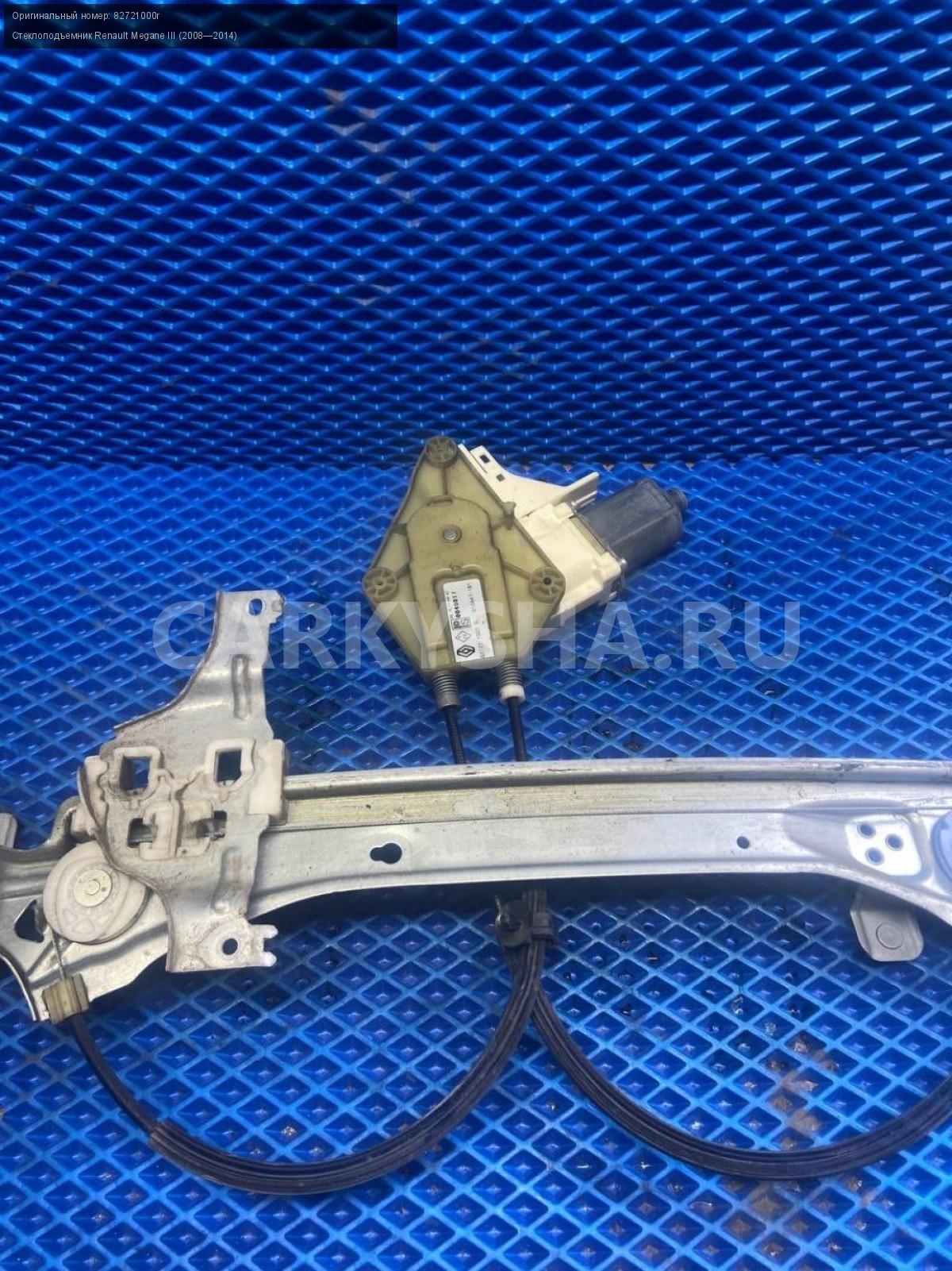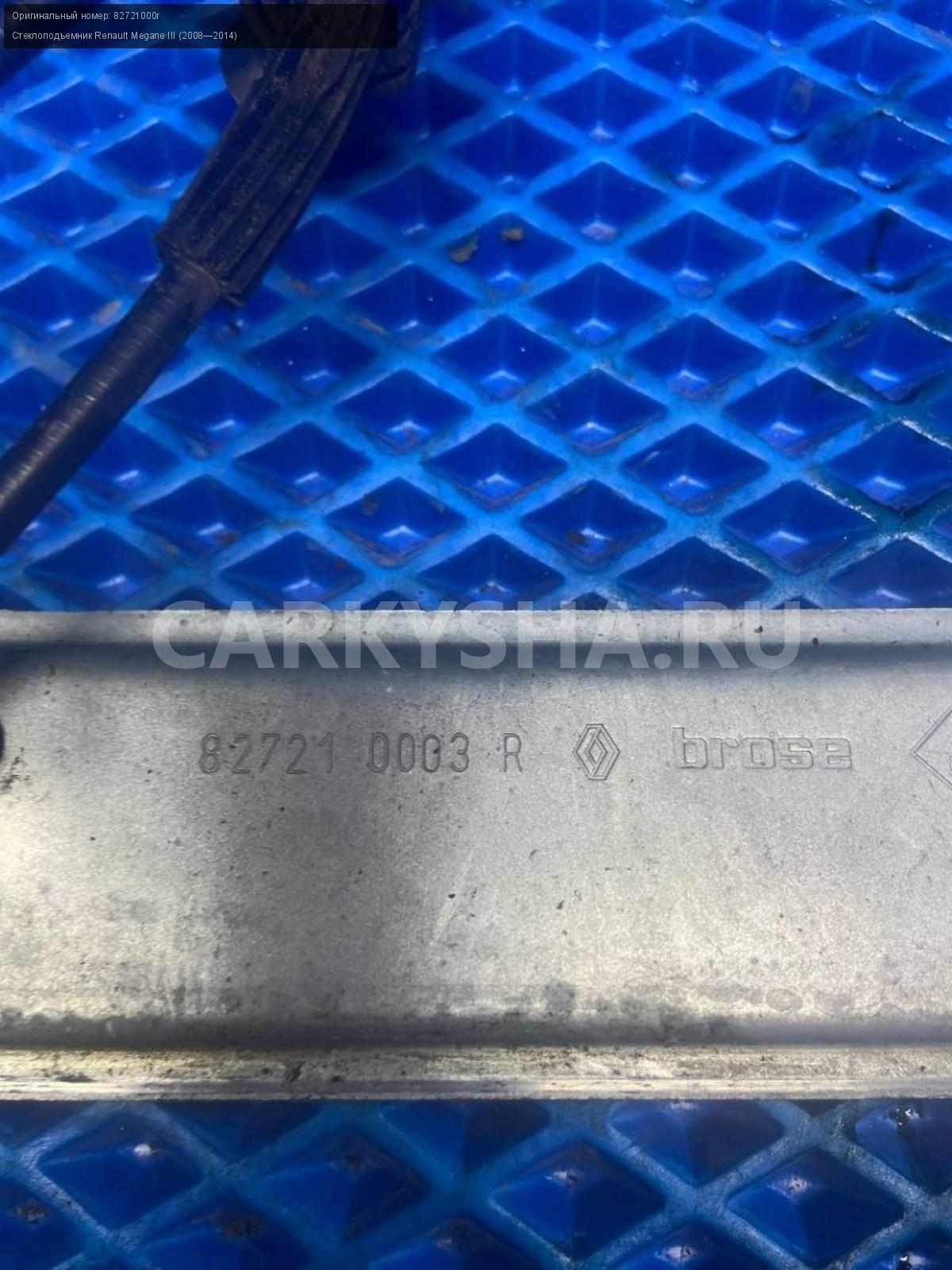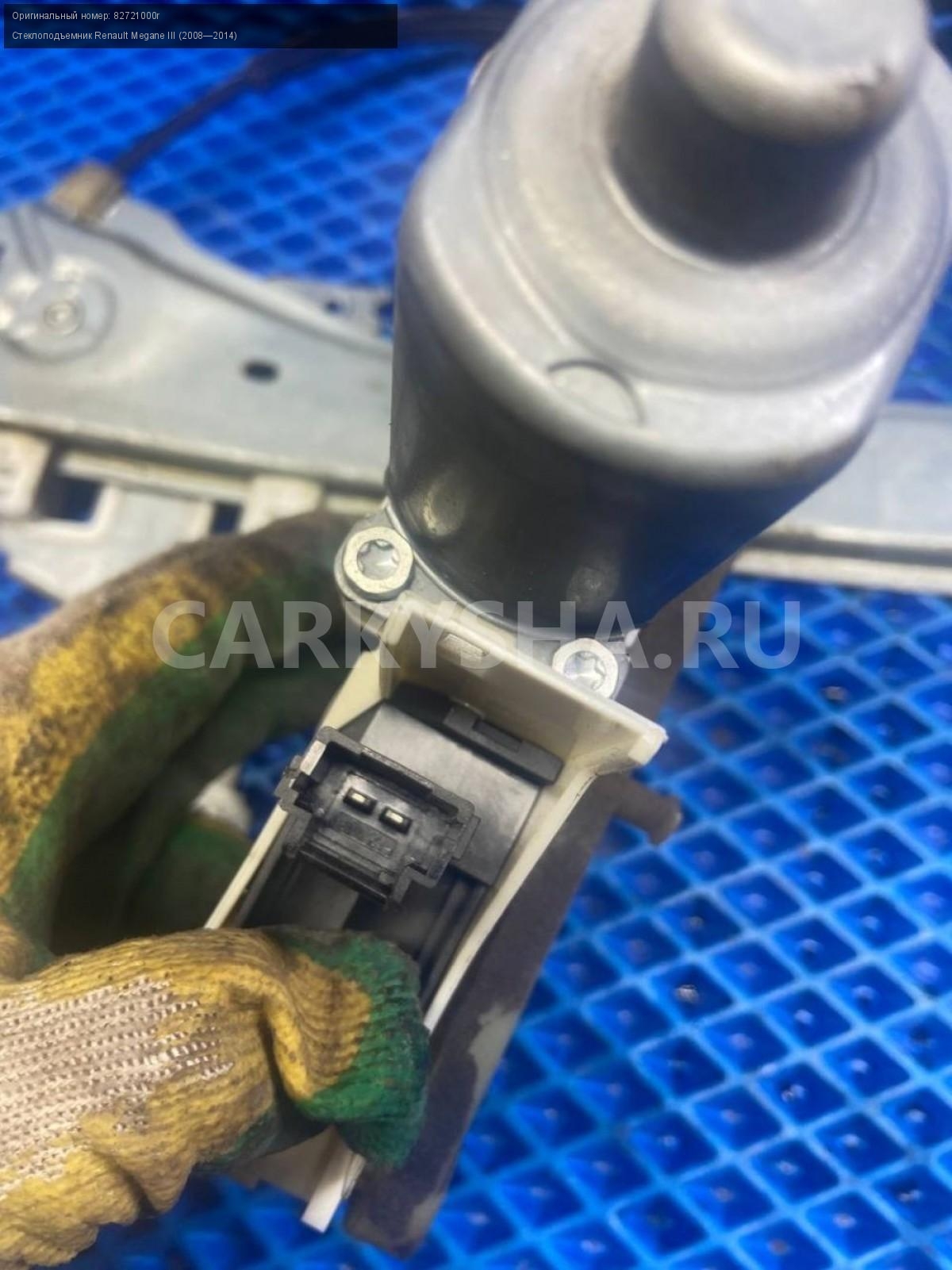 Renault Megane III, стеклоподъемник задний левый.\nАртикул: 7541\n\nОриг. номер: 82721000r\nПроизводитель: RENAULT\nПримечание:Рено Меган 3, стеклоподъемник задний левый, б/у. \n\nМарка: Renault\nМодель: Megane III (2008—2014)\nГод выпуска: 2011\nКузов тип: Хетчбэк\nДвигатель номер: K4MV838\nМодель двигателя: инжектор\nОбъем: 1.6\nТопливо: Бензин\nКоробка: Механика\nЦвет: Темно-Серый\nПраво/Лево: Лево\nПеред/Зад: Зад\nСовместимости: Renault Megane III (2008—2014) 1.6 MT (106 л.с.)\nСовместимость: