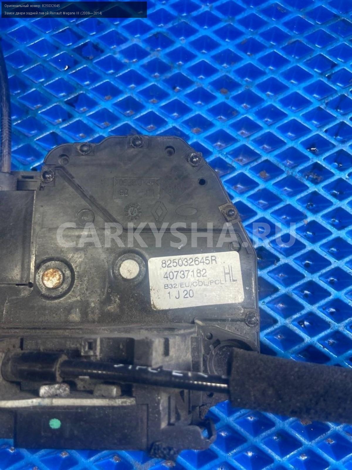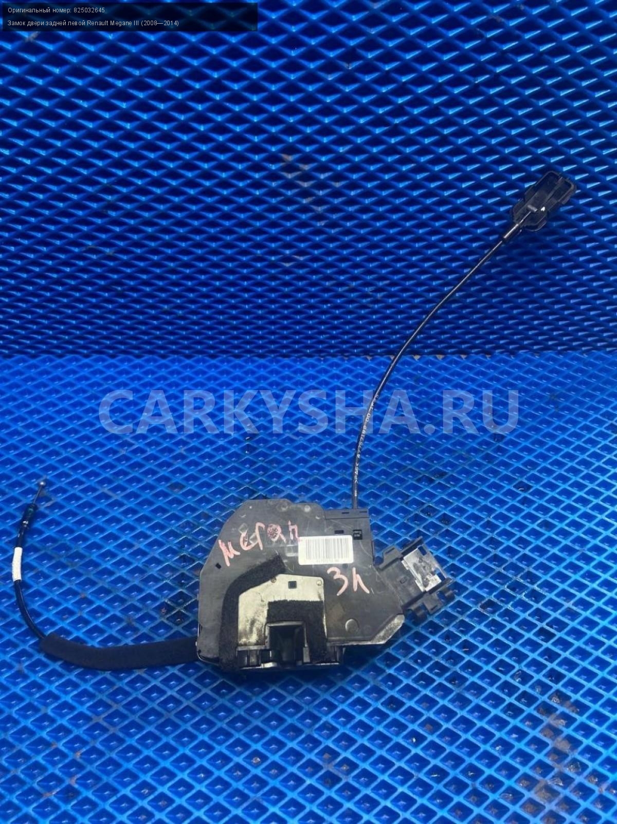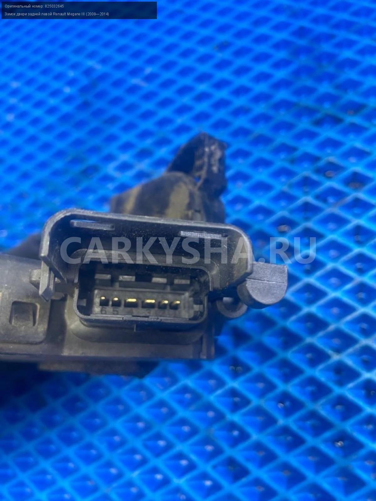 Renault Megane III , замок двери задней левой.\nАртикул: 7538\n\nОриг. номер: 825032645\nПроизводитель: RENAULT\nПримечание:Рено Меган 3, замок двери задней левой, б/у. \n\nМарка: Renault\nМодель: Megane III (2008—2014)\nГод выпуска: 2011\nКузов тип: Хетчбэк\nДвигатель номер: K4MV838\nМодель двигателя: инжектор\nОбъем: 1.6\nТопливо: Бензин\nКоробка: Механика\nЦвет: Темно-Серый\nПраво/Лево: Лево\nПеред/Зад: Зад\nСовместимости: Renault Megane III (2008—2014) 1.6 MT (106 л.с.)\nСовместимость: