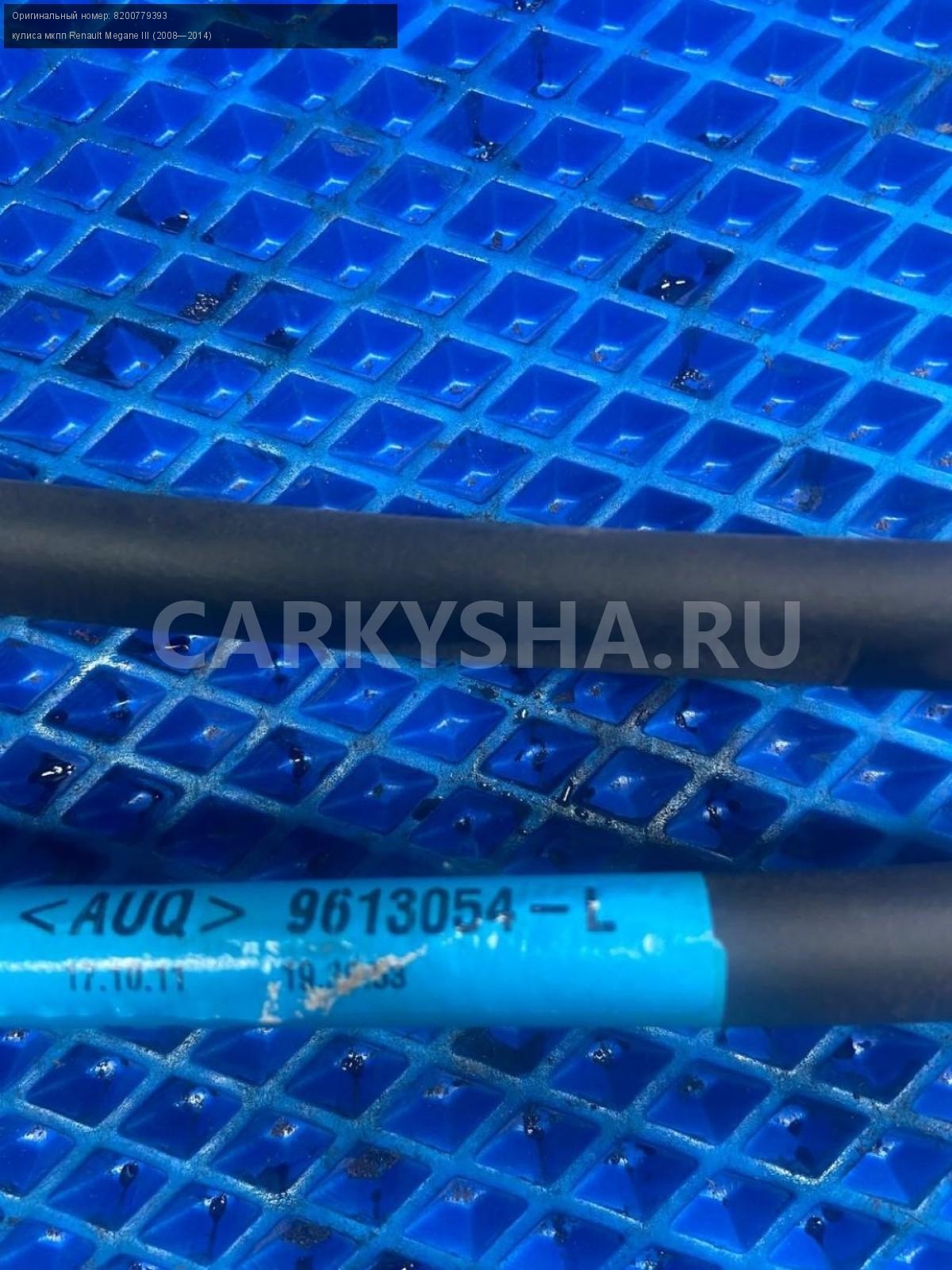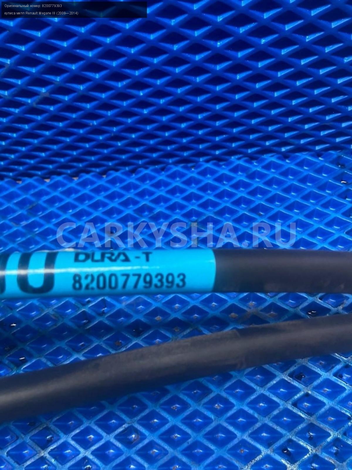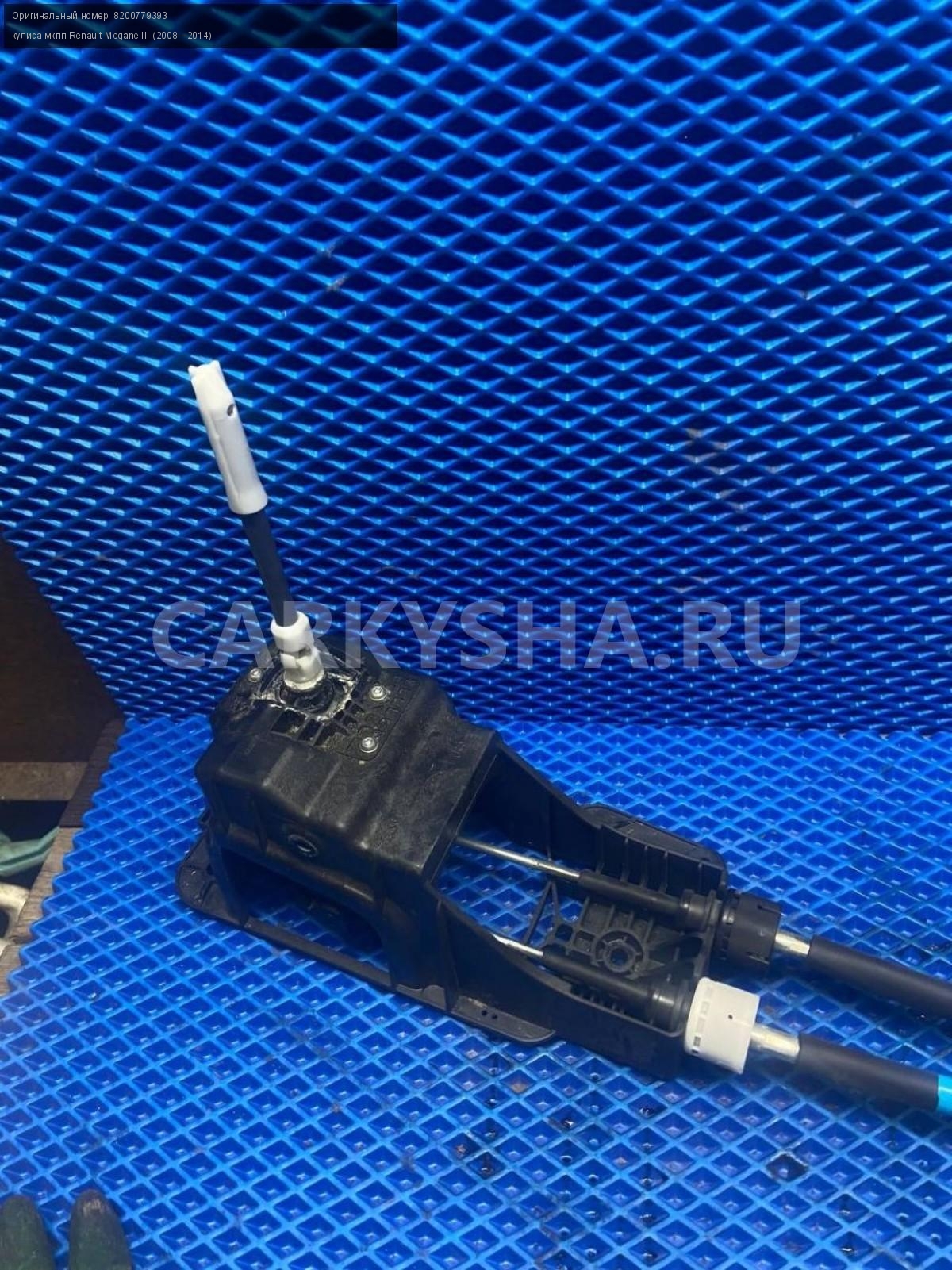 Renault Megane III, Кулиса МКПП с тросами.\nАртикул: 7549\n\nОриг. номер: 8200779393\nПроизводитель: RENAULT\nПримечание:Рено Меган 3 , кулиса МКПП с тросами, б/у. \n\nМарка: Renault\nМодель: Megane III (2008—2014)\nГод выпуска: 2011\nКузов тип: Хетчбэк\nДвигатель номер: K4MV838\nМодель двигателя: инжектор\nОбъем: 1.6\nТопливо: Бензин\nКоробка: Механика\nЦвет: Темно-Серый\nСовместимости: Renault Megane III (2008—2014) 1.6 MT (106 л.с.)\nСовместимость: