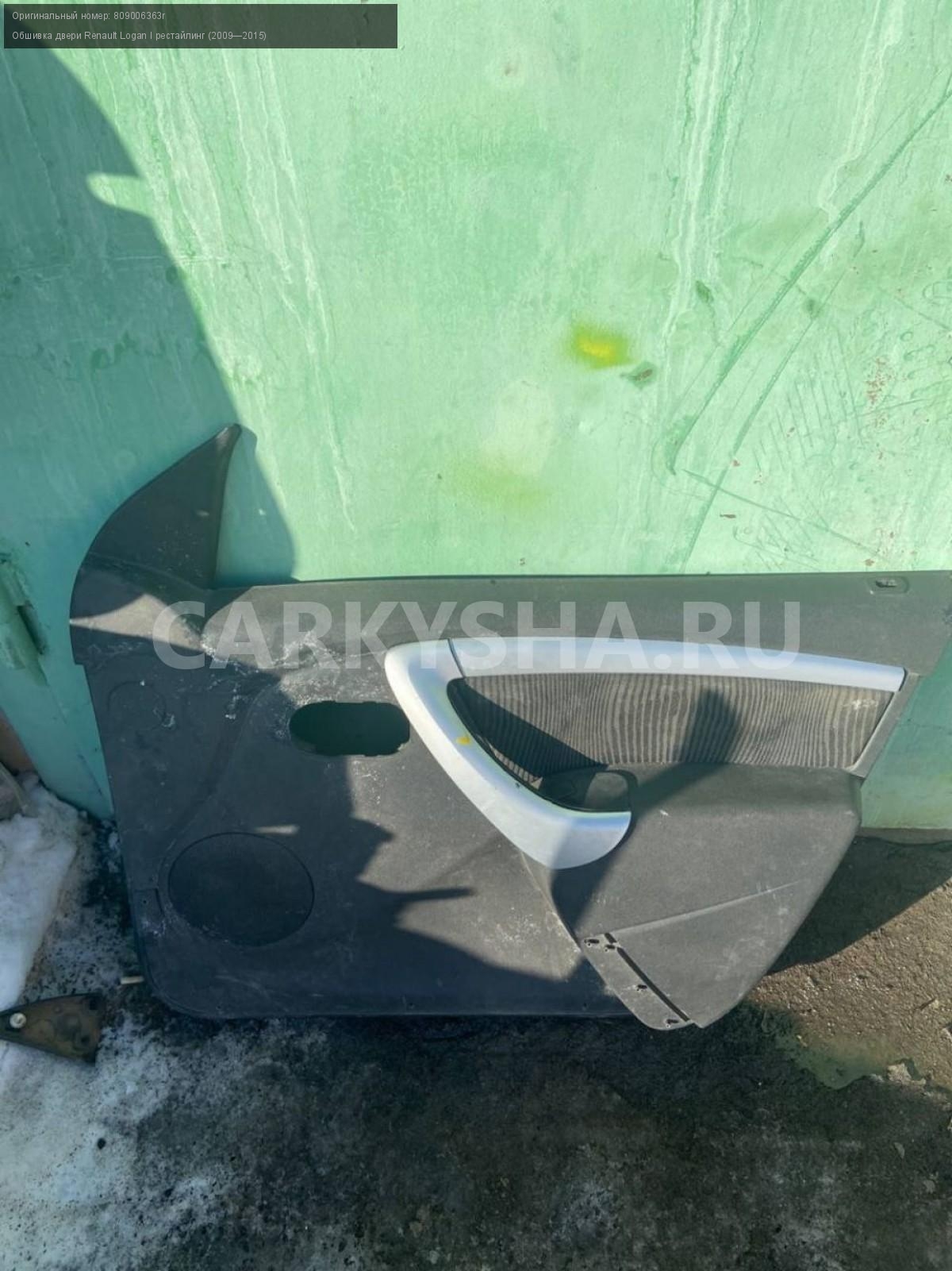 Renault Logan фаза2, карта двери передней правой\nАртикул: 4342\n\nОриг. номер: 809006363r\nПроизводитель: RENAULT\nПримечание:Рено Логан фаза 2, ( до 2014) , карта двери передней правой, бу. \n\nМарка: Renault\nМодель: Logan I рестайлинг (2009—2015)\nГод выпуска: 2013\nКузов тип: Седан\nДвигатель номер: K7JA 710\nМодель двигателя: инжектор\nОбъем: 1.6\nТопливо: Бензин\nКоробка: Механика\nЦвет: Синий\nПраво/Лево: Право\nПеред/Зад: Перед\nСовместимости: Renault Logan I рестайлинг (2009—2015) 1.6 MT (85 л.с.)\nСовместимость: