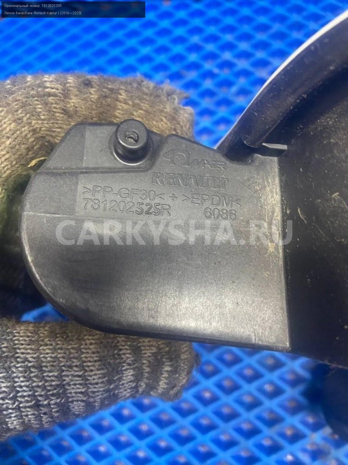 Renault Kaptur, лючок бензобака в сборе.\nАртикул: 7747\n\nОриг. номер: 781202525R\nПроизводитель: RENAULT\nПримечание:Рено Каптюр, лючок бензобака в сборе , б/у. \n\nМарка: Renault\nМодель: Kaptur I (2016—2020)\nГод выпуска: 2016\nКузов тип: Внедорожник\nДвигатель номер: H4M438\nМодель двигателя: инжектор\nОбъем: 1.6\nТопливо: Бензин\nКоробка: Механика\nЦвет: Белый\nСовместимости: Renault Kaptur I (2016—2020) 1.6 MT (114 л.с.)\nСовместимость: