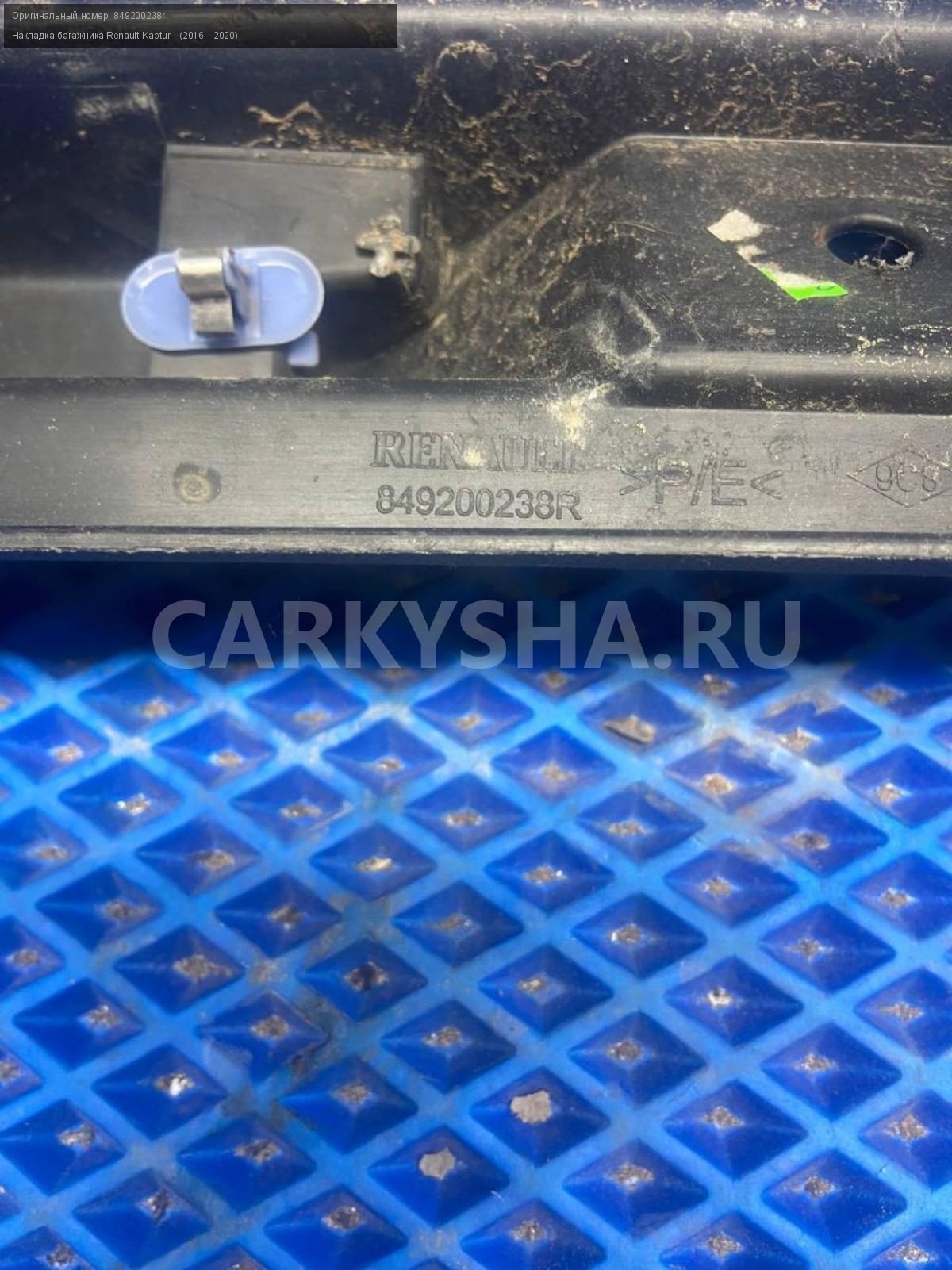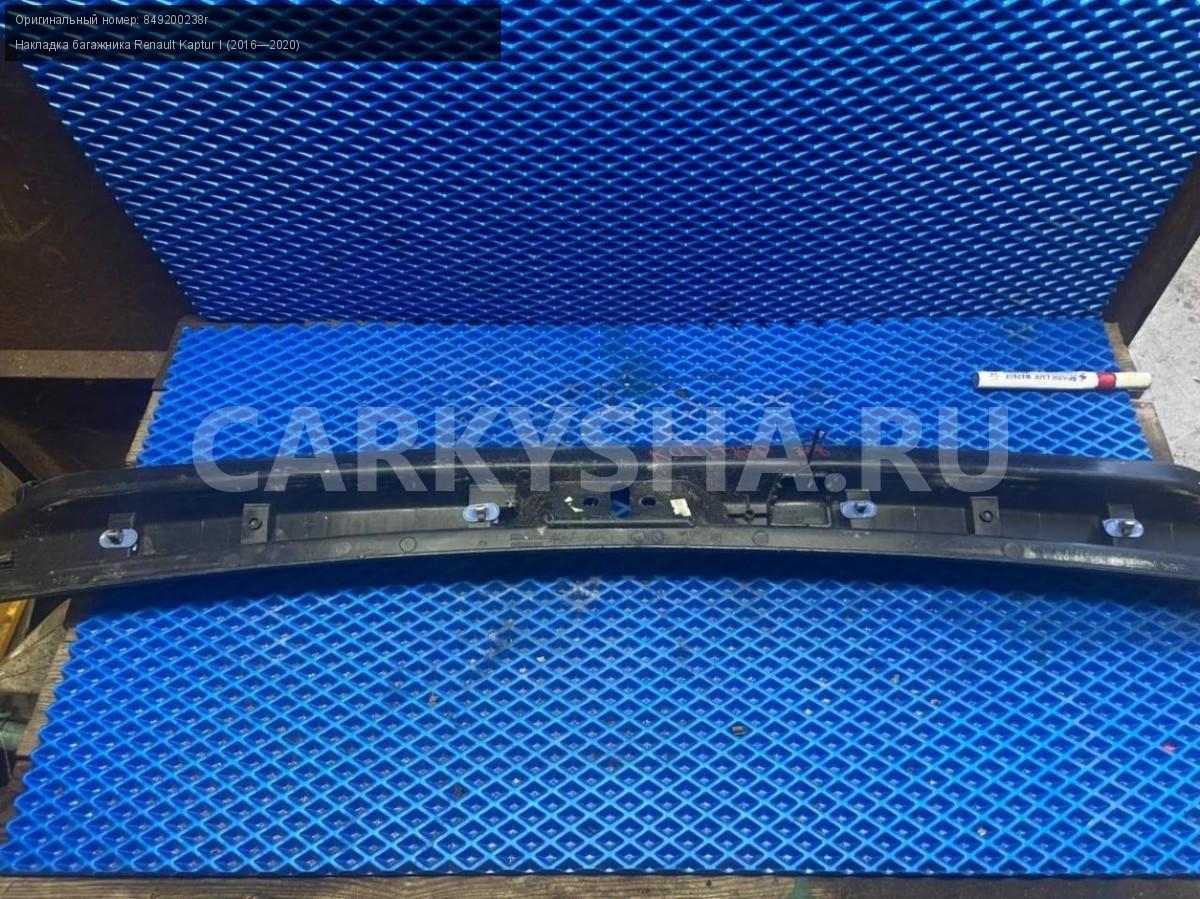Renault Kaptur, накладка замка багажника.\nАртикул: 7758\n\nОриг. номер: 849200238r\nПроизводитель: RENAULT\nПримечание:Рено Каптюр, накладка замка багажника, б/у. \n\nМарка: Renault\nМодель: Kaptur I (2016—2020)\nГод выпуска: 2016\nКузов тип: Внедорожник\nДвигатель номер: H4M438\nМодель двигателя: инжектор\nОбъем: 1.6\nТопливо: Бензин\nКоробка: Механика\nЦвет: Белый\nСовместимости: Renault Kaptur I (2016—2020) 1.6 MT (114 л.с.)\nСовместимость: