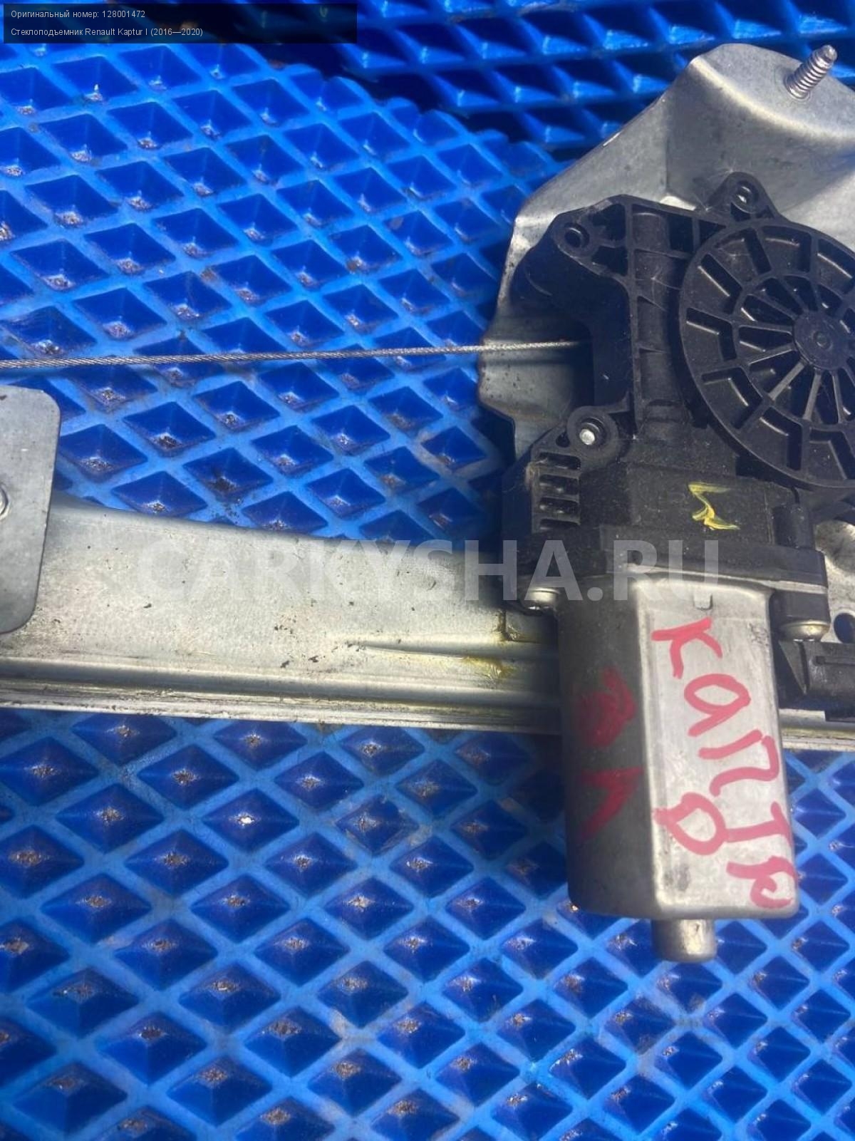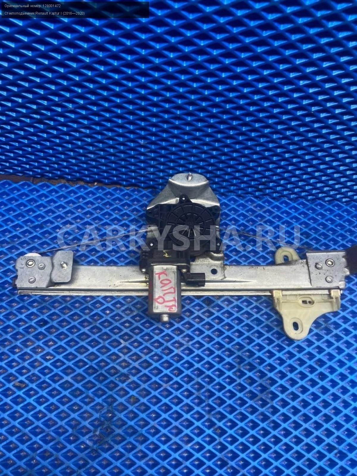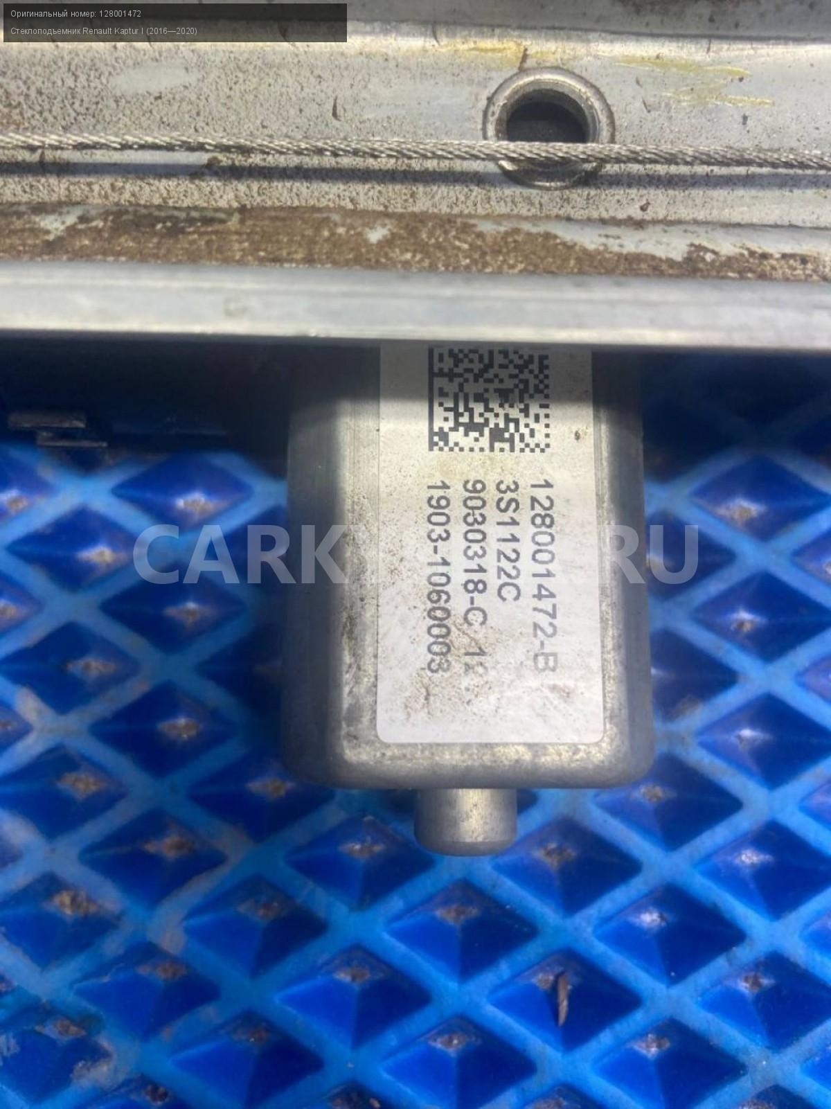 Renault Kaptur, стеклоподъемник задний левый.\nАртикул: 7875\n\nОриг. номер: 128001472\nПроизводитель: RENAULT\nПримечание:Рено Каптюр, стеклоподъемник задний левый, б/у. \n\nМарка: Renault\nМодель: Kaptur I (2016—2020)\nГод выпуска: 2016\nКузов тип: Внедорожник\nДвигатель номер: H4M438\nМодель двигателя: инжектор\nОбъем: 1.6\nТопливо: Бензин\nКоробка: Механика\nЦвет: Белый\nПраво/Лево: Лево\nПеред/Зад: Зад\nСовместимости: Renault Kaptur I (2016—2020) 1.6 MT (114 л.с.)\nСовместимость: