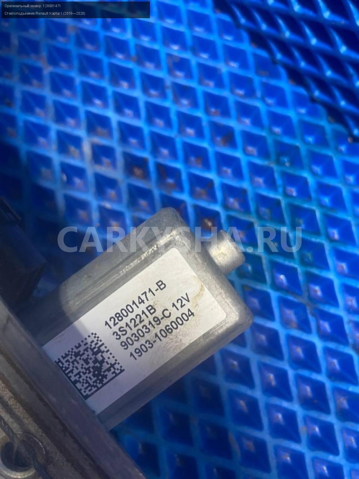 Renault Kaptur, стеклоподъемник задний правый.\nАртикул: 7874\n\nОриг. номер: 128001471\nПроизводитель: RENAULT\nПримечание:Рено Каптюр, стеклоподъемник задний правый, б/у. \n\nМарка: Renault\nМодель: Kaptur I (2016—2020)\nГод выпуска: 2016\nКузов тип: Внедорожник\nДвигатель номер: H4M438\nМодель двигателя: инжектор\nОбъем: 1.6\nТопливо: Бензин\nКоробка: Механика\nЦвет: Белый\nПраво/Лево: Право\nПеред/Зад: Зад\nСовместимости: Renault Kaptur I (2016—2020) 1.6 MT (114 л.с.)\nСовместимость: