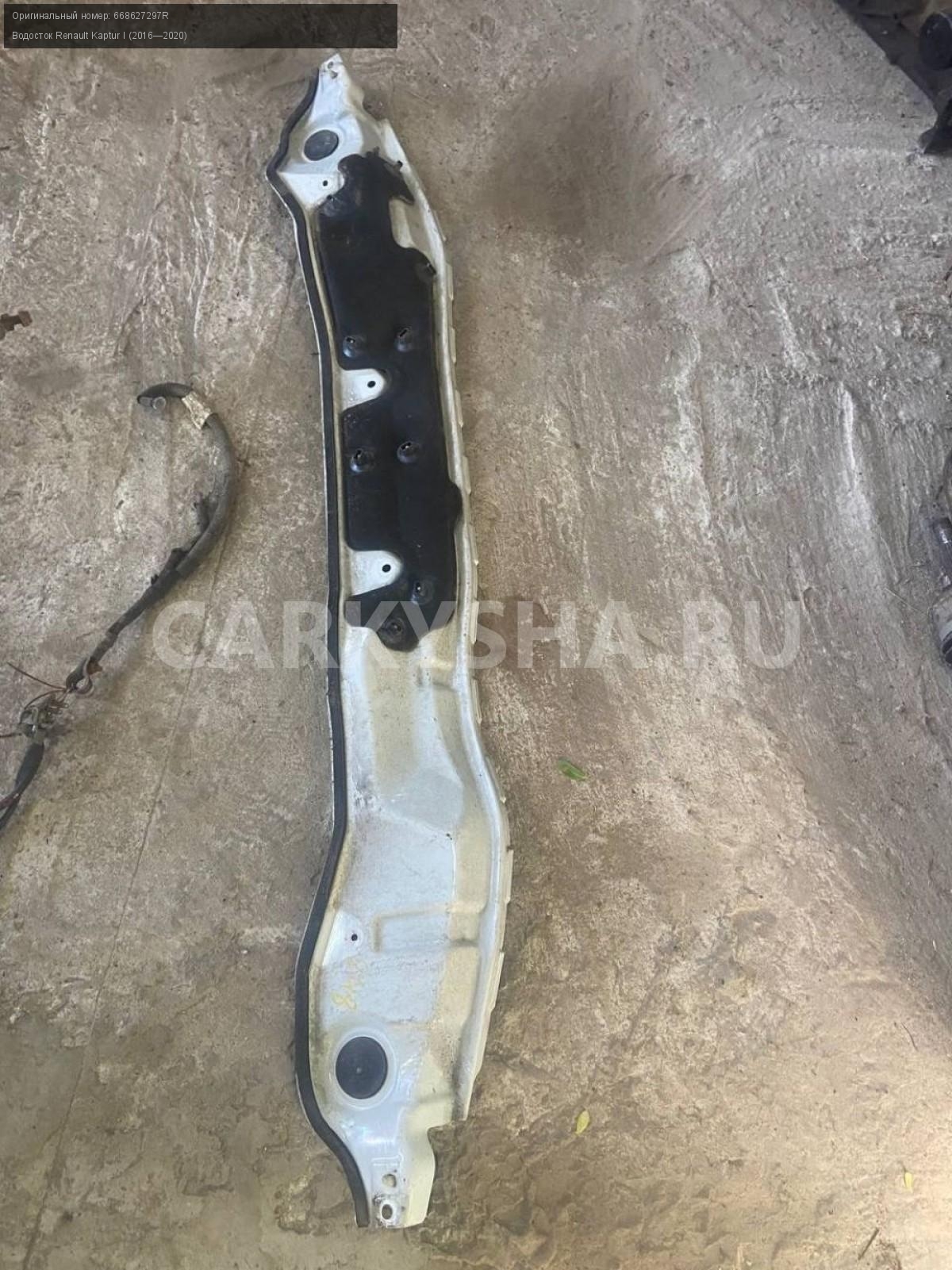 Renault Kaptur, Планка под жабо, водосток.\nАртикул: 7889\n\nОриг. номер: 668627297R\nПроизводитель: RENAULT\nПримечание:Рено Каптюр, планка под жабо, водосток, б/у. \n\nМарка: Renault\nМодель: Kaptur I (2016—2020)\nГод выпуска: 2016\nКузов тип: Внедорожник\nДвигатель номер: H4M438\nМодель двигателя: инжектор\nОбъем: 1.6\nТопливо: Бензин\nКоробка: Механика\nЦвет: Белый\nСовместимости: Renault Kaptur I (2016—2020) 1.6 MT (114 л.с.)\nСовместимость: