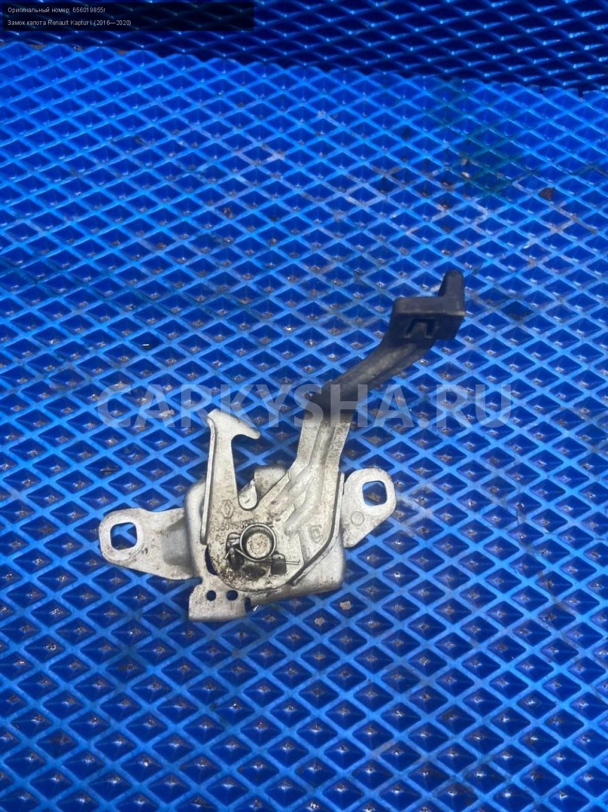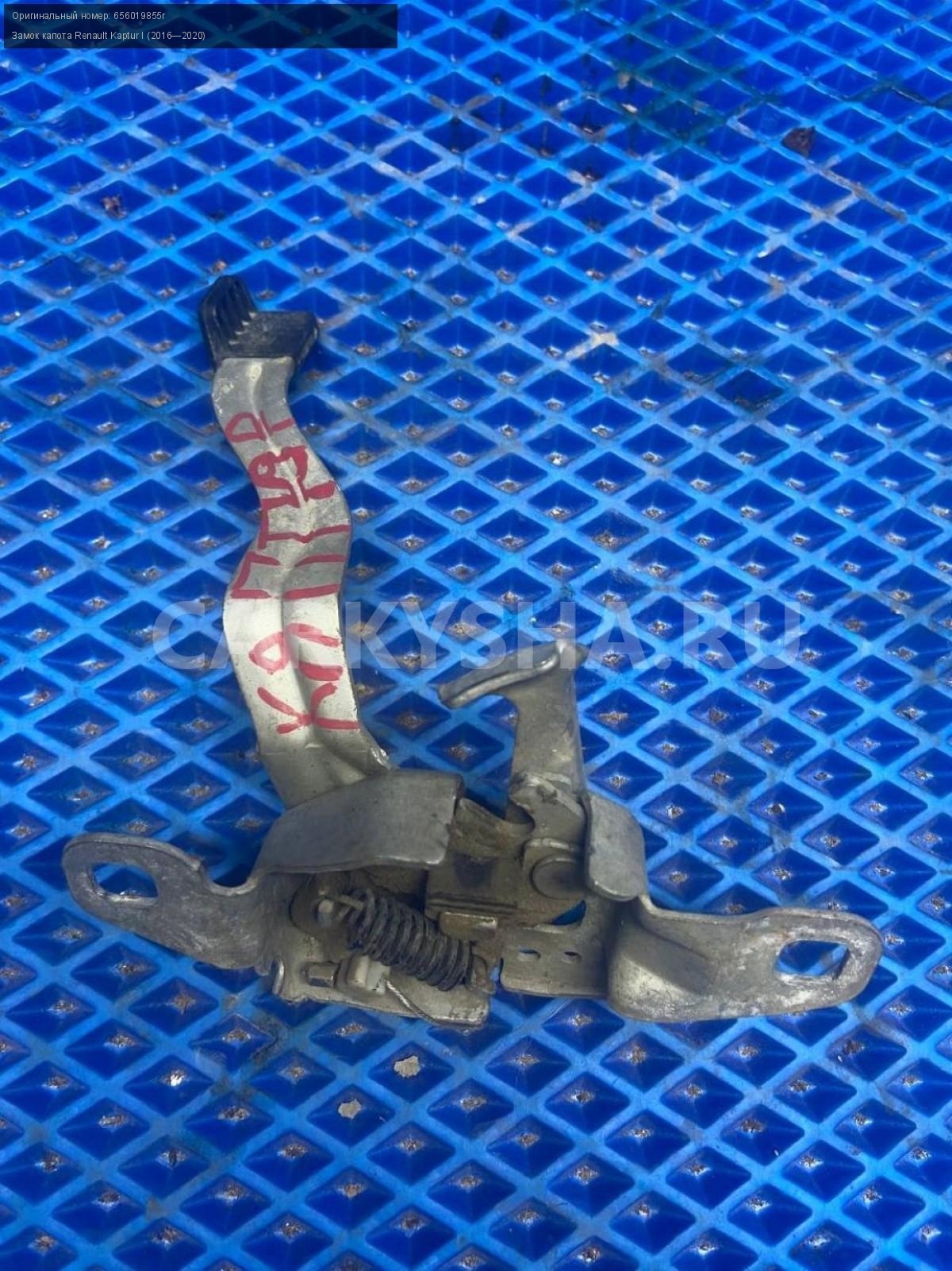 Renault Kaptur, замок капота.\nАртикул: 7756\n\nОриг. номер: 656019855r\nПроизводитель: RENAULT\nПримечание:Рено Каптюр , замок капота, б/у. \n\nМарка: Renault\nМодель: Kaptur I (2016—2020)\nГод выпуска: 2016\nКузов тип: Внедорожник\nДвигатель номер: H4M438\nМодель двигателя: инжектор\nОбъем: 1.6\nТопливо: Бензин\nКоробка: Механика\nЦвет: Белый\nСовместимости: Renault Kaptur I (2016—2020) 1.6 MT (114 л.с.)\nСовместимость: