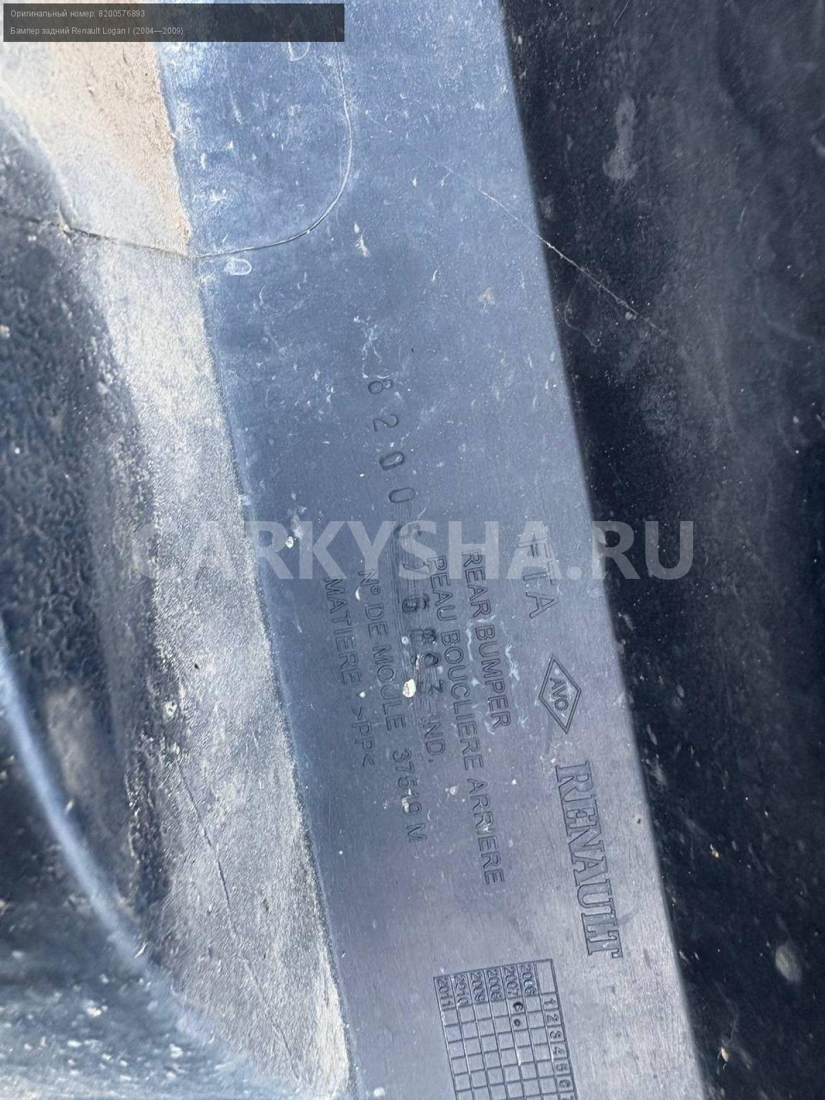 Renault Logan I , бампер задний.\nАртикул: 8588\n\nОриг. номер: 8200576893\nПроизводитель: RENAULT\nПримечание:Рено Логан 1, бампер задний, б/у. \n\nМарка: Renault\nМодель: Logan I (2004—2009)\nГод выпуска: 2007\nКузов тип: Седан\nДвигатель номер: K7JA710\nМодель двигателя: инжектор\nОбъем: 1.4\nТопливо: Бензин\nКоробка: Механика\nЦвет: Синий\nПеред/Зад: Зад\nСовместимости: Renault Logan I (2004—2009) 1.4 MT (75 л.с.)\nСовместимость: