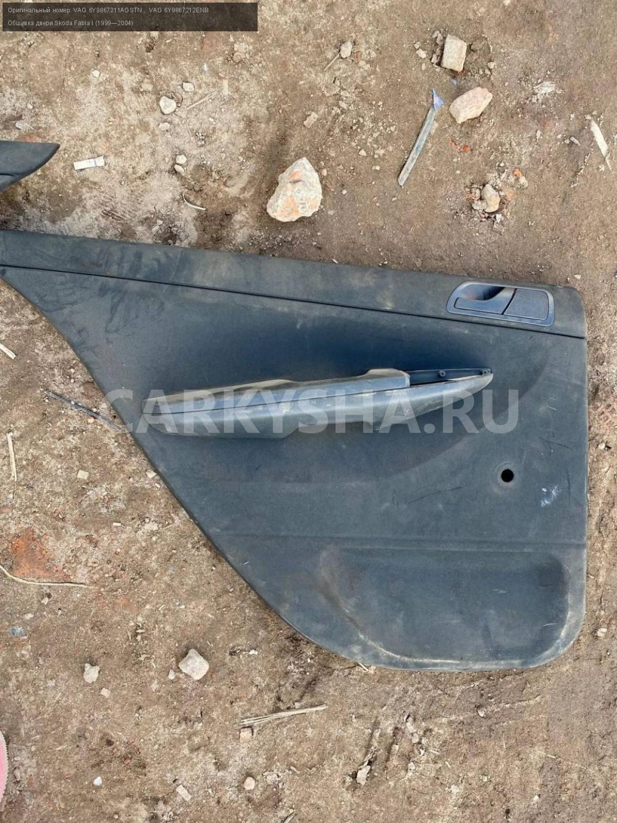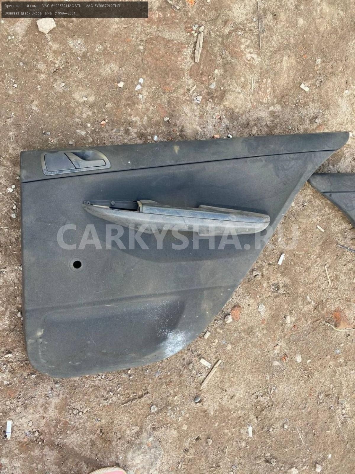 Skoda Fabia I седан, обшивка задних дверей.\nАртикул: 3503\n\nОриг. номер: VAG 6Y9867211AGSTN \nНомера замен: VAG 6Y9867212ENB\nПроизводитель: SKODA\nПримечание:Шкода Фабия 1 седан, обшивка (карты) задних дверей, б/у, цена за обе. \n\nМарка: Skoda\nМодель: Fabia I (1999—2004)\nПраво/Лево: Право/Лево\nПеред/Зад: Зад\nСовместимости: Skoda Fabia I (1999—2004)\nСовместимость: