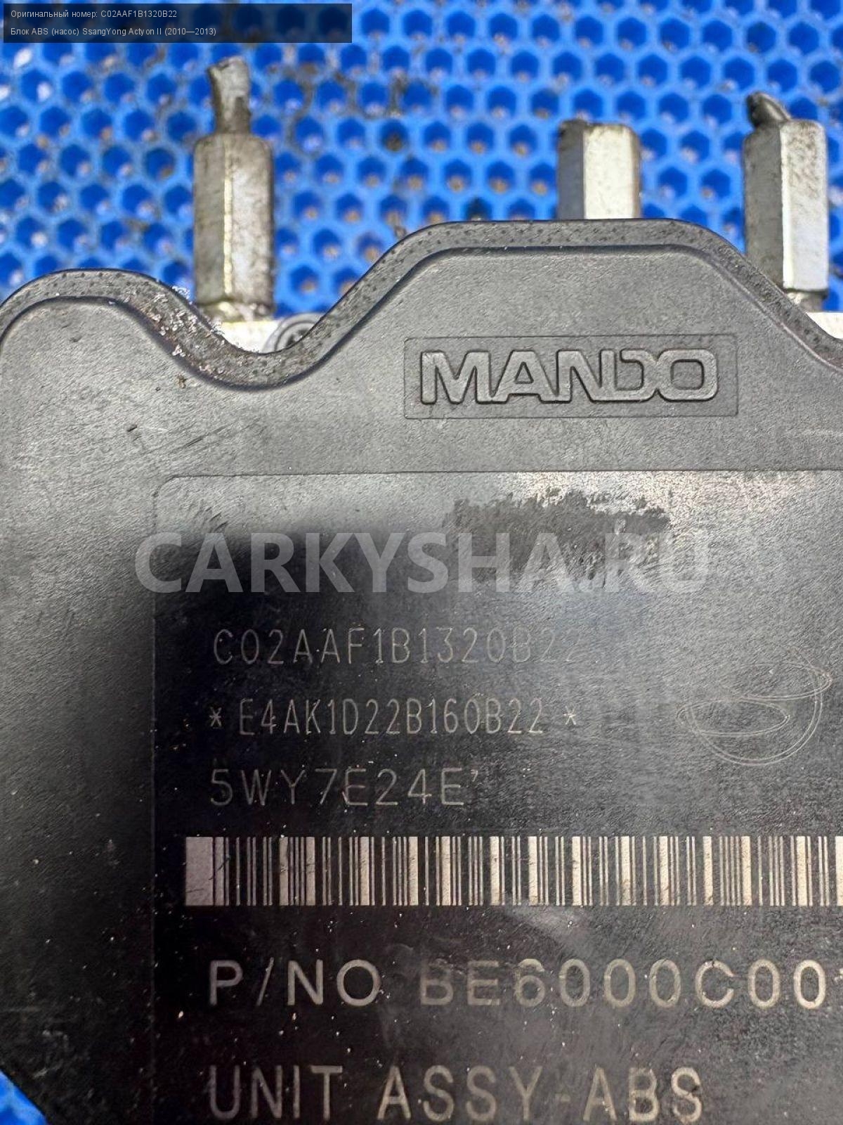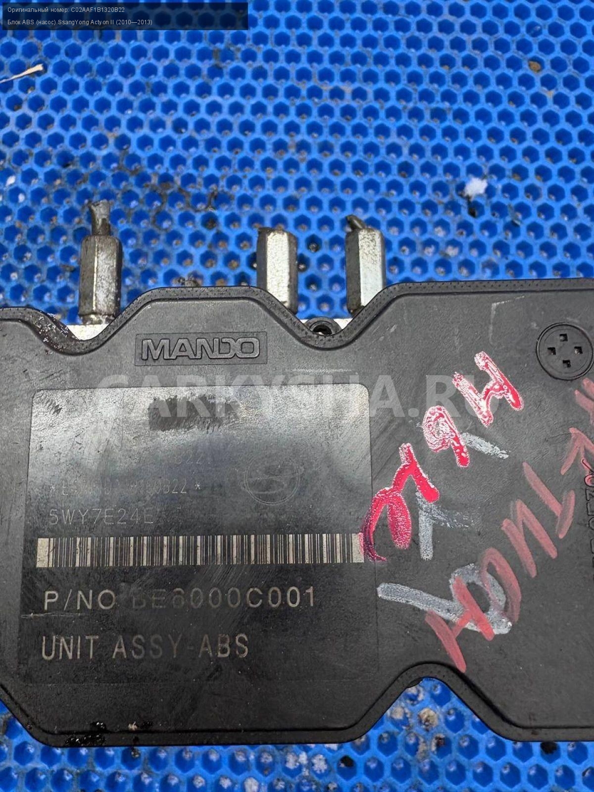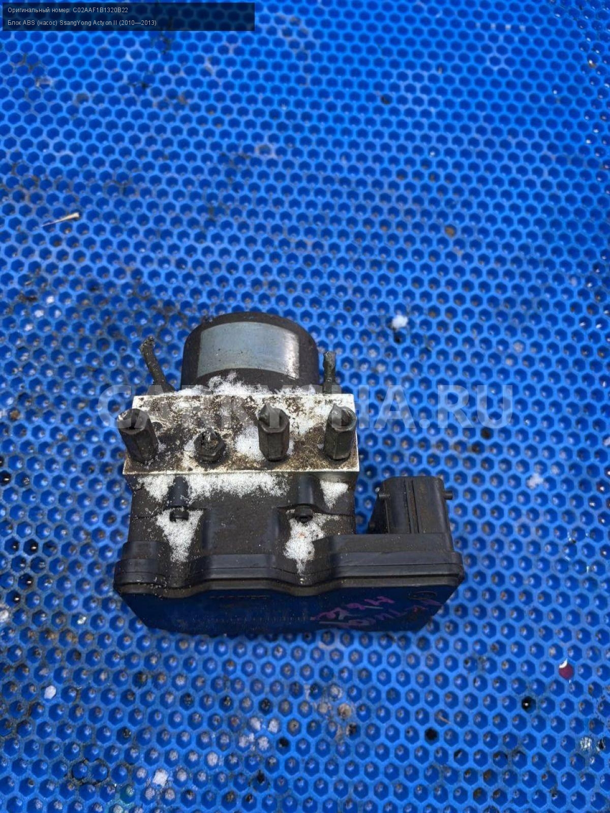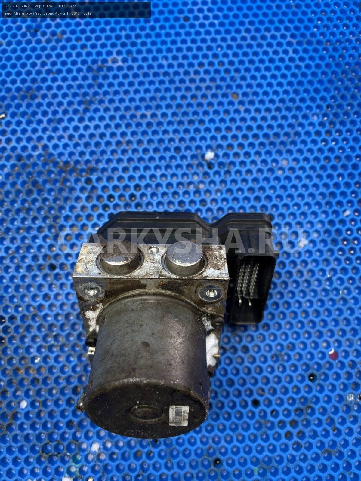 SsangYong Actyon New, блок ABS, насос ABS.\nАртикул: 9764\n\nОриг. номер: C02AAF1B1320B22\nПроизводитель: SSANG YONG\nПримечание:СсангЕнг Актион Нью, блок АБС, насос АБС, б/у. \n\nМарка: SsangYong\nМодель: Actyon II (2010—2013)\nГод выпуска: 2011\nКузов тип: Внедорожник\nДвигатель номер: D20DTF\nМодель двигателя: турбо-дизель\nОбъем: 2.0\nТопливо: Дизель\nКоробка: Автомат\nЦвет: Серебристый\nСовместимости: SsangYong Actyon II (2010—2013) 2.0 D AT (149 л.с.)\nСовместимость: