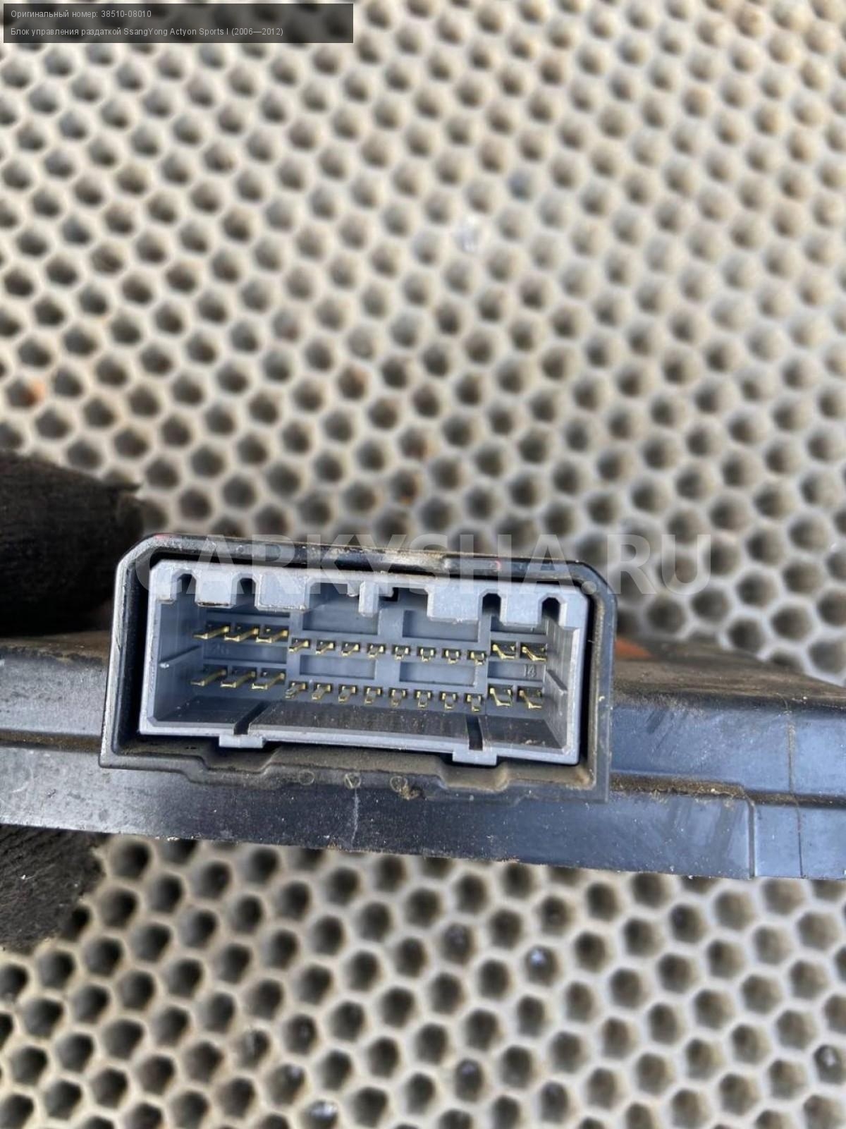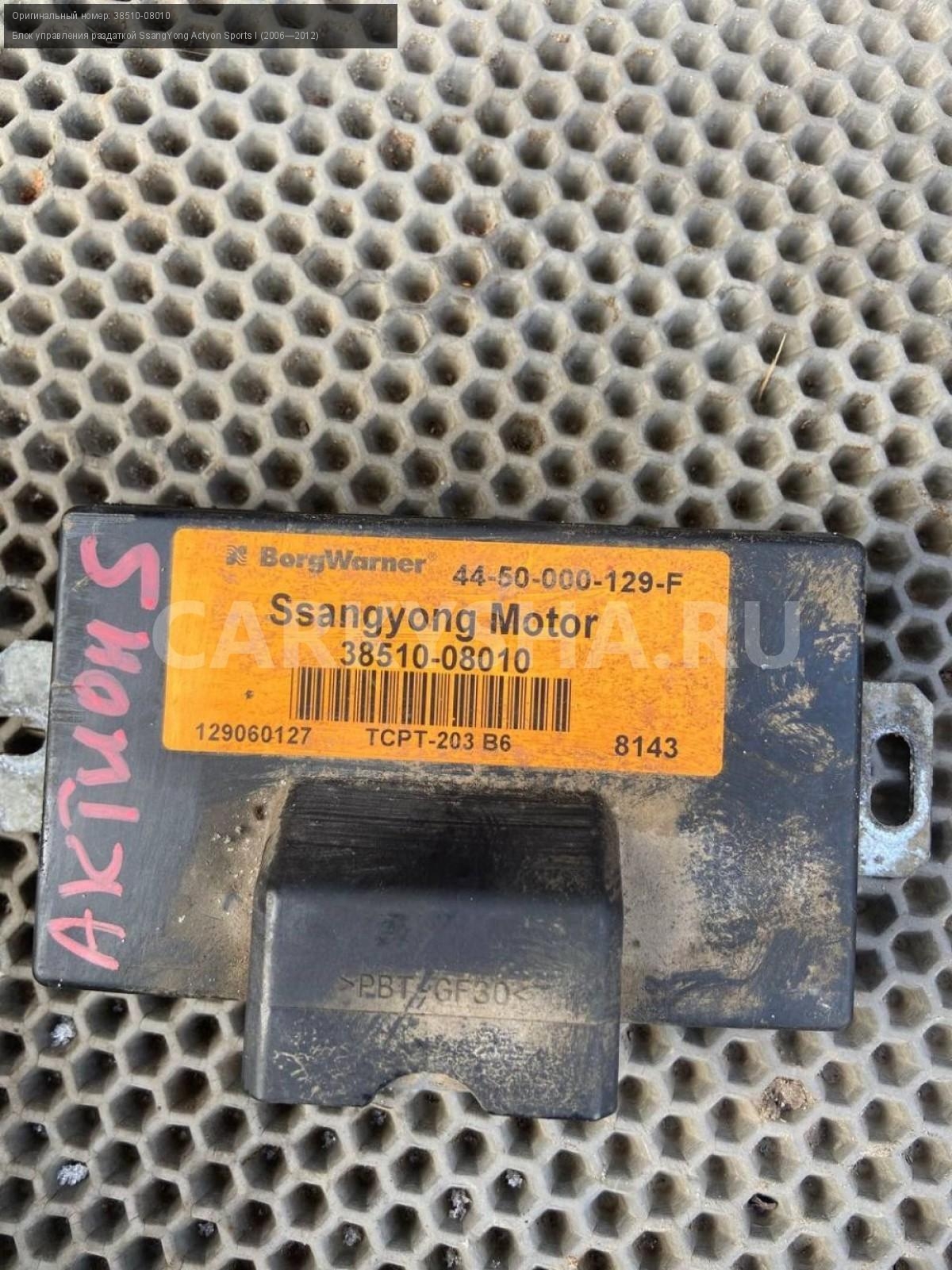 SsangYong Actyon Sports, Блок управл. раздаткой.\nАртикул: 7112\n\nОриг. номер: 38510-08010\nПроизводитель: SSANG YONG\nПримечание:СсангЕнг Актион Спорт, Блок управления раздаткой, б/у. \n\nМарка: SsangYong\nМодель: Actyon Sports I (2006—2012)\nГод выпуска: 2008\nКузов тип: Пикап\nДвигатель номер: 664950\nМодель двигателя: турбо-дизель\nОбъем: 2.0\nТопливо: Дизель\nКоробка: Механика\nЦвет: Синий\nСовместимости: SsangYong Actyon Sports I (2006—2012) 2.0 Xdi 4WD MT (141 л.с.)\nСовместимость: