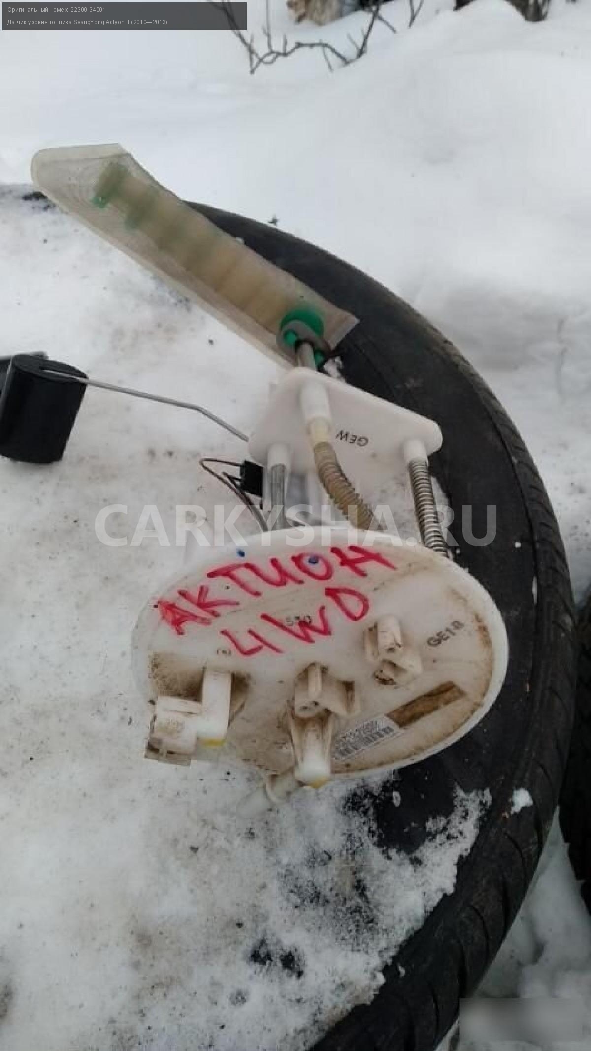 Ssangyong new actyon датчик уровня топлива\nАртикул: 1078\n\nОриг. номер: 22300-34001\nПроизводитель: SSANG YONG\nПримечание:Ssangyong new actyon,дизель 2.0 датчик уровня топлива.НАЛИЧИЕ ЗАПЧАСТИ УТОЧНИТЕ ПО ТЕЛЕФОНУ ИЛИ В СООБЩЕНИЯХ,б/у, а так же множество авто в разборе, работаем с регионами отправка тк, выкуп авто после дтп по всей России, отправка тк осуществляется после 100% оплаты, наложенным платежом не работаем, стоимость доставки не рассчитываем\n\nМарка: SsangYong\nМодель: Actyon II (2010—2013)\nКузов тип: Внедорожник\nОбъем: 2.0\nТопливо: Дизель\nКоробка: Автомат\nСовместимости: SsangYong Actyon II (2010—2013) 2.0 D 4WD AT (149 л.с.)\nСовместимость: