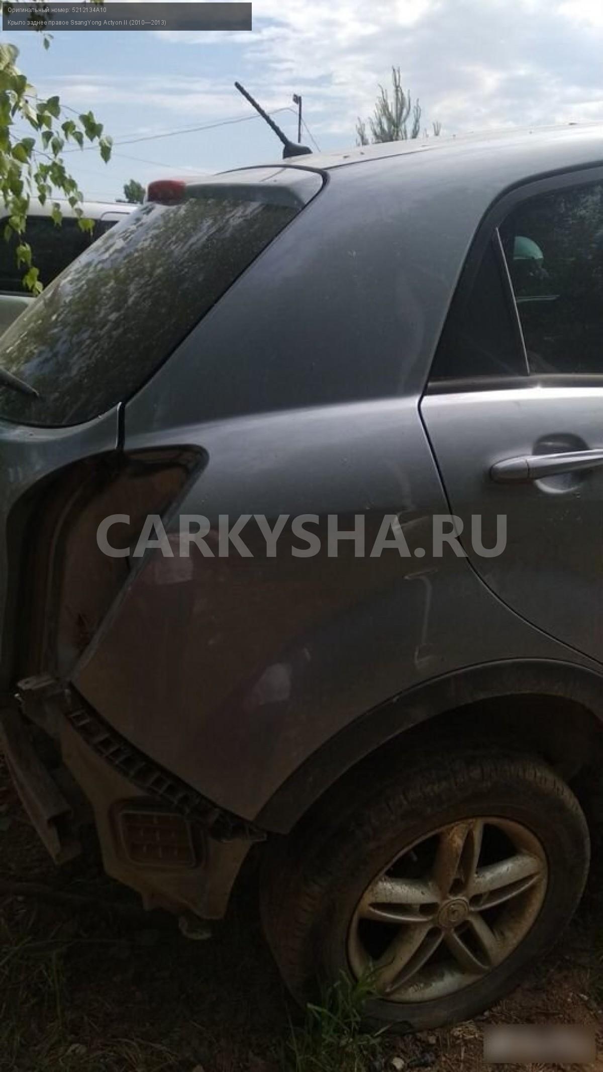 Ssangyong actyon new крыло заднее правое\nАртикул: 995\n\nОриг. номер: 5212134A10\nПроизводитель: SSANG YONG\nПримечание:Ssangyong actyon new 2011 дорестайлинг, крыло заднее правое,бу, а так же множество авто в разборе, работаем с регионами отправка тк, выкуп авто после дтп по всей России, отправка тк осуществляется после 100% оплаты, наложенным платежом не работаем, стоимость доставки не рассчитываем\n\nМарка: SsangYong\nМодель: Actyon II (2010—2013)\nКузов тип: Внедорожник\nОбъем: 2.0\nТопливо: Дизель\nКоробка: Автомат\nПраво/Лево: Право\nПеред/Зад: Зад\nСовместимости: SsangYong Actyon II (2010—2013) 2.0 D 4WD AT (149 л.с.)\nСовместимость:
