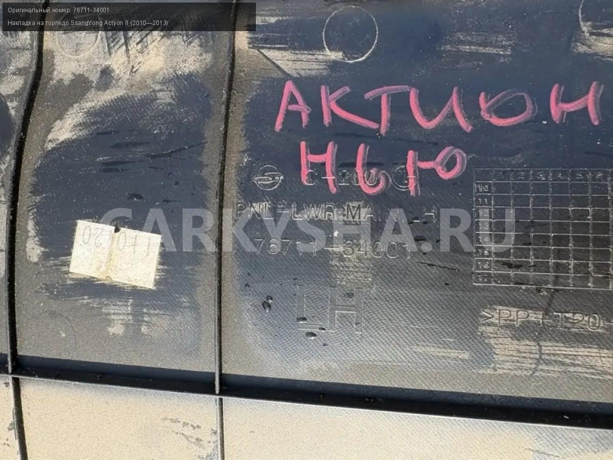 SsangYong Actyon New, накладка торпедо нижняя.\nАртикул: 10056\n\nОриг. номер: 76711-34001\nПроизводитель: SSANG YONG\nПримечание:СсангЕнг Актион Нью, накладка торпедо нижняя, б/у. \n\nМарка: SsangYong\nМодель: Actyon II (2010—2013)\nГод выпуска: 2011\nКузов тип: Внедорожник\nДвигатель номер: D20DTF\nМодель двигателя: турбо-дизель\nОбъем: 2.0\nТопливо: Дизель\nКоробка: Автомат\nЦвет: Серебристый\nВерх/Низ: Низ\nСовместимости: SsangYong Actyon II (2010—2013) 2.0 D AT (149 л.с.)\nСовместимость: