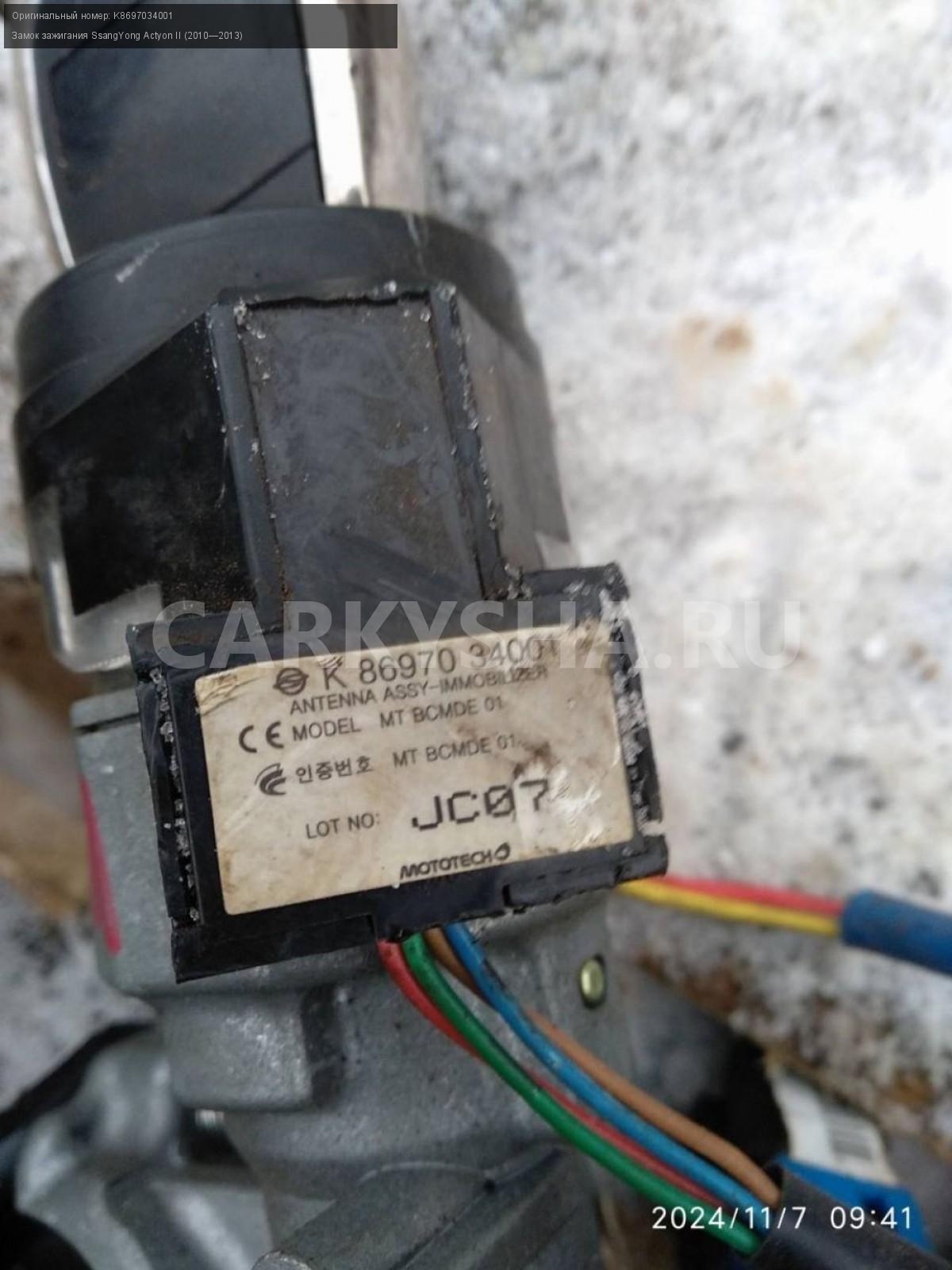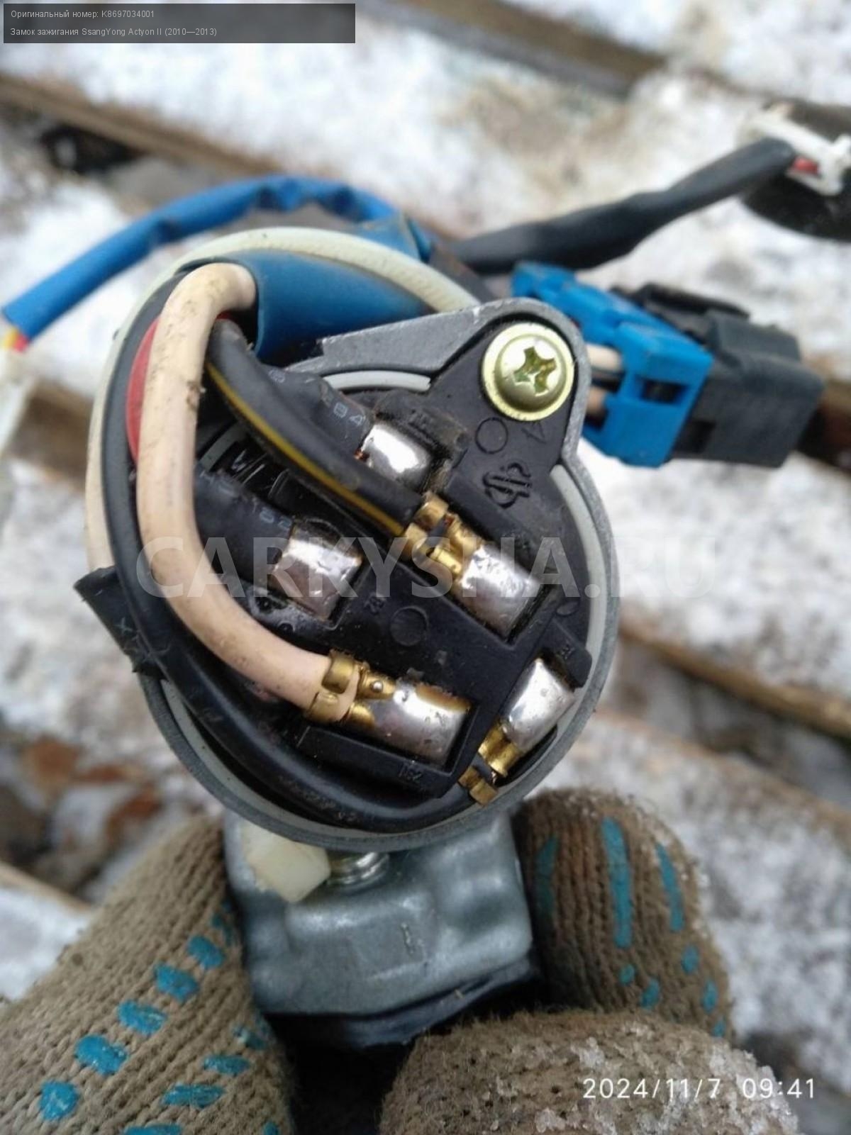 SsangYong Actyon New, дизель, замок зажигания.\nАртикул: 6200\n\nОриг. номер: K8697034001\nПроизводитель: SSANG YONG\nПримечание:Сан Енг Актион Нью, дизель, замок зажигания, б/у. \n\nМарка: SsangYong\nМодель: Actyon II (2010—2013)\nСовместимости: SsangYong Actyon II (2010—2013)\nСовместимость: