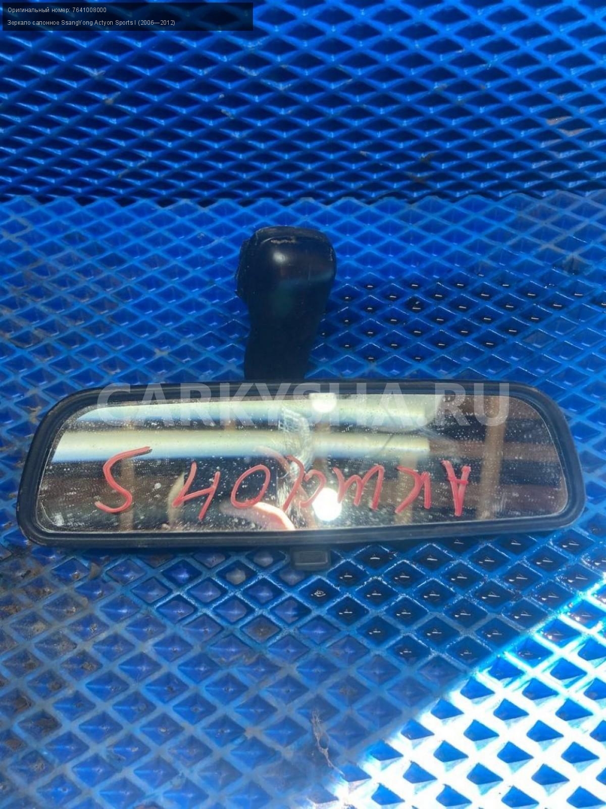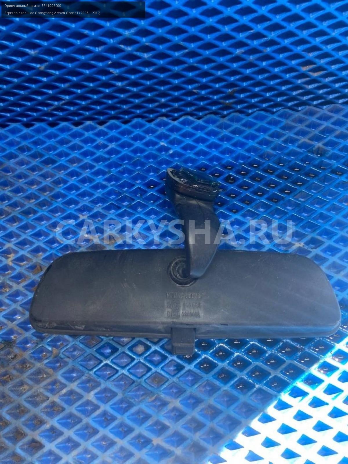 SsangYong Actyon Sports I Зеркало салонное.\nАртикул: 8284\n\nОриг. номер: 7641008000\nПроизводитель: SSANG YONG\nПримечание:СсангЕнг Актион Спорт 1, зеркало салонное, б/у. \n\nМарка: SsangYong\nМодель: Actyon Sports I (2006—2012)\nГод выпуска: 2008\nКузов тип: Пикап\nДвигатель номер: 664950\nМодель двигателя: турбо-дизель\nОбъем: 2.0\nТопливо: Дизель\nКоробка: Механика\nЦвет: Синий\nСовместимости: SsangYong Actyon Sports I (2006—2012) 2.0 Xdi 4WD MT (141 л.с.)\nСовместимость: