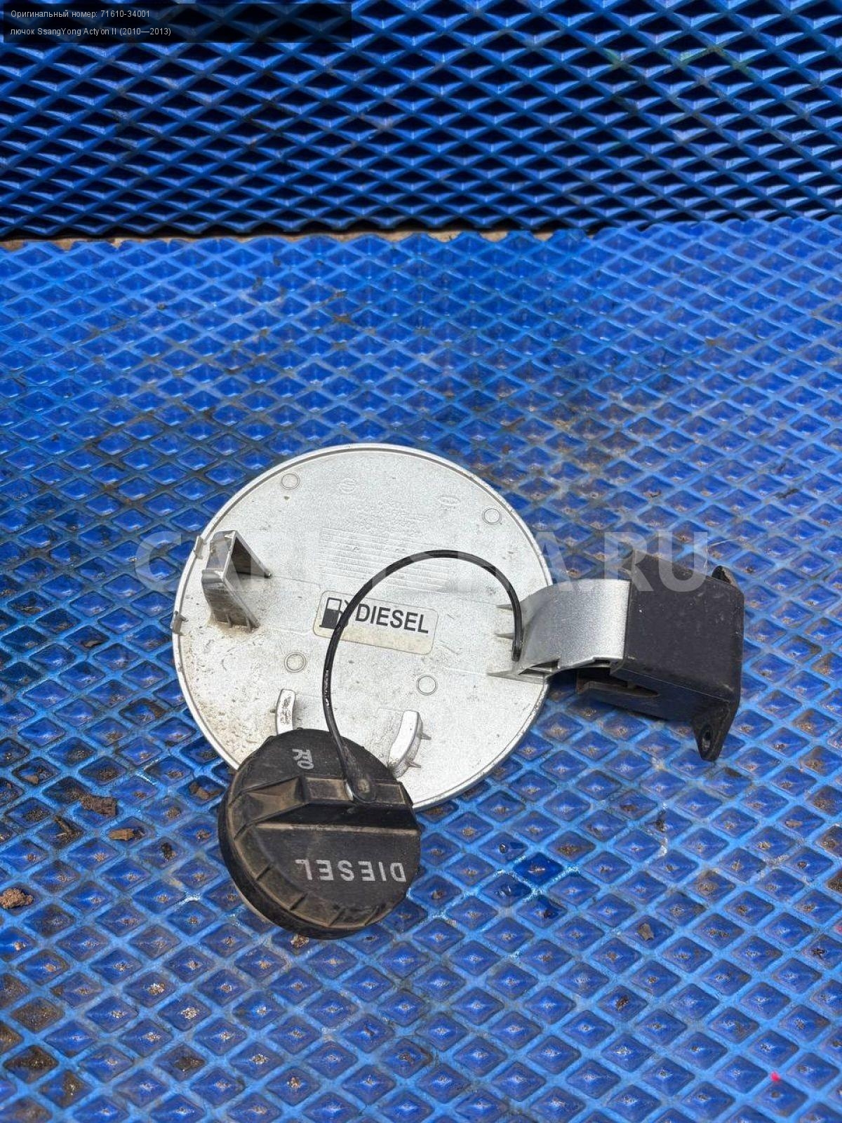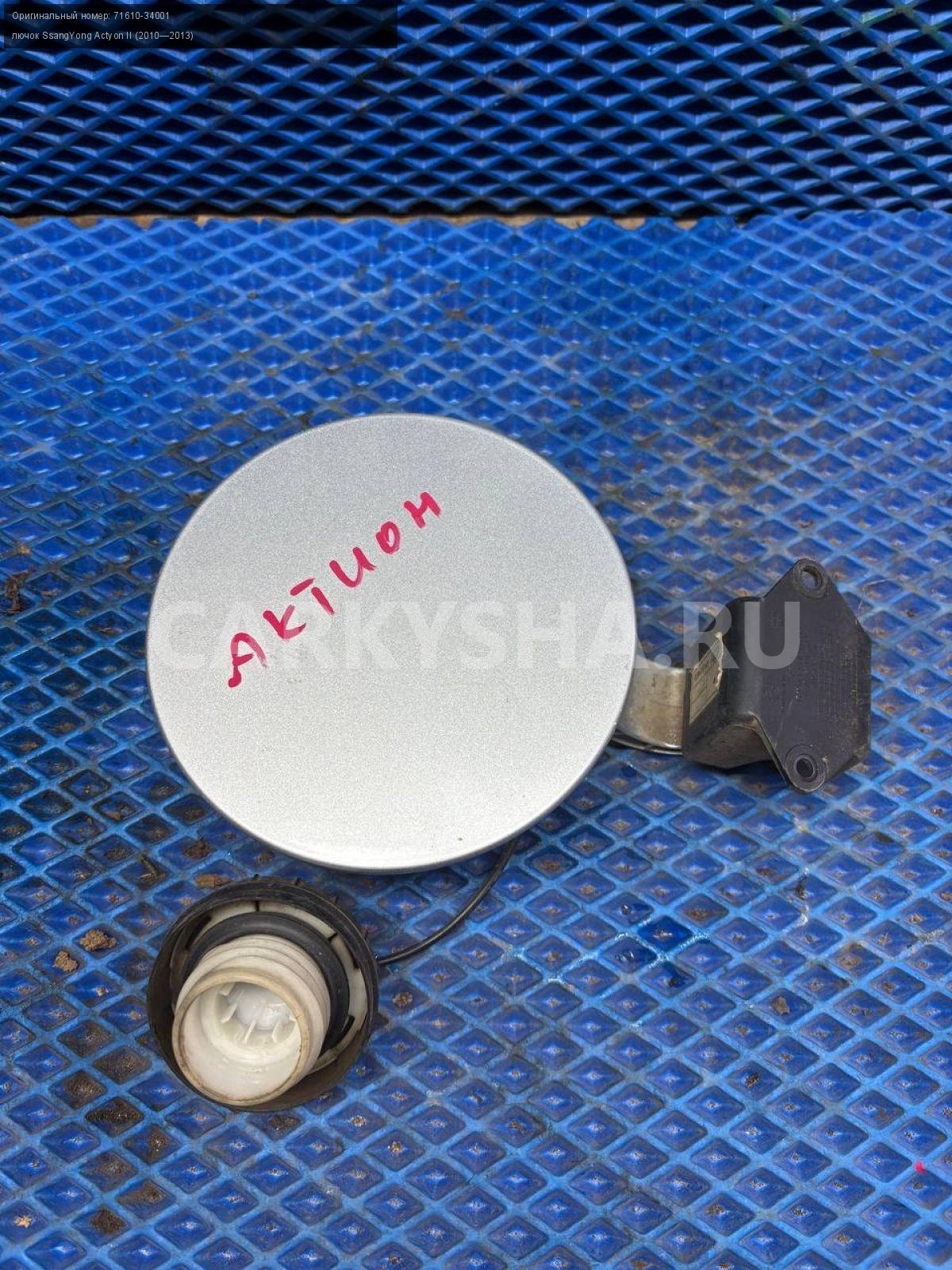 SsangYong Actyon New, лючок бензобака.\nАртикул: 9325\n\nОриг. номер: 71610-34001\nПроизводитель: SSANG YONG\nПримечание:СсангЕнг Актион Нью, лючок бензобака, б/у. \n\nМарка: SsangYong\nМодель: Actyon II (2010—2013)\nГод выпуска: 2011\nКузов тип: Внедорожник\nДвигатель номер: D20DTF\nМодель двигателя: турбо-дизель\nОбъем: 2.0\nТопливо: Дизель\nКоробка: Автомат\nЦвет: Серебристый\nСовместимости: SsangYong Actyon II (2010—2013) 2.0 D AT (149 л.с.)\nСовместимость: