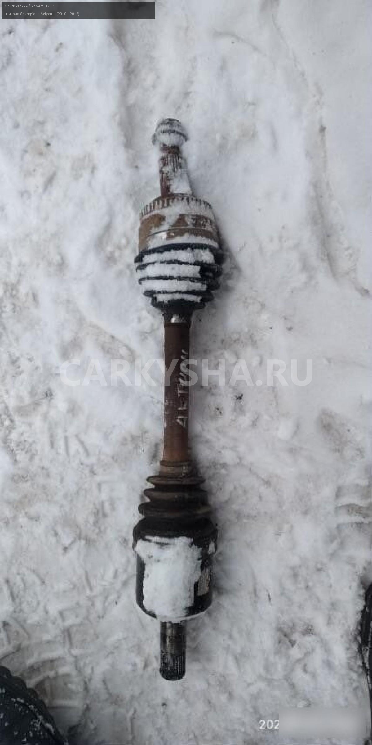 Ssangyong actyon new привод левый\nАртикул: 549\n\nОриг. номер: D20DTF\nПроизводитель: SSANG YONG\nПримечание:Актион нью 2 до рест дизель акпп привод левый бу, а так же множество автомобилей в разборе, работаем с регионами отправка тк, выкуп авто после ДТП по всей России, отправка тк осуществляется после 100% оплаты, наложенным платежом не работаем стоимость доставки не рассчитываем\n\nМарка: SsangYong\nМодель: Actyon II (2010—2013)\nКузов тип: Внедорожник\nОбъем: 2.0\nТопливо: Бензин\nКоробка: Автомат\nСовместимости: SsangYong Actyon II (2010—2013) 2.0 4WD AT (149 л.с.)\nСовместимость: