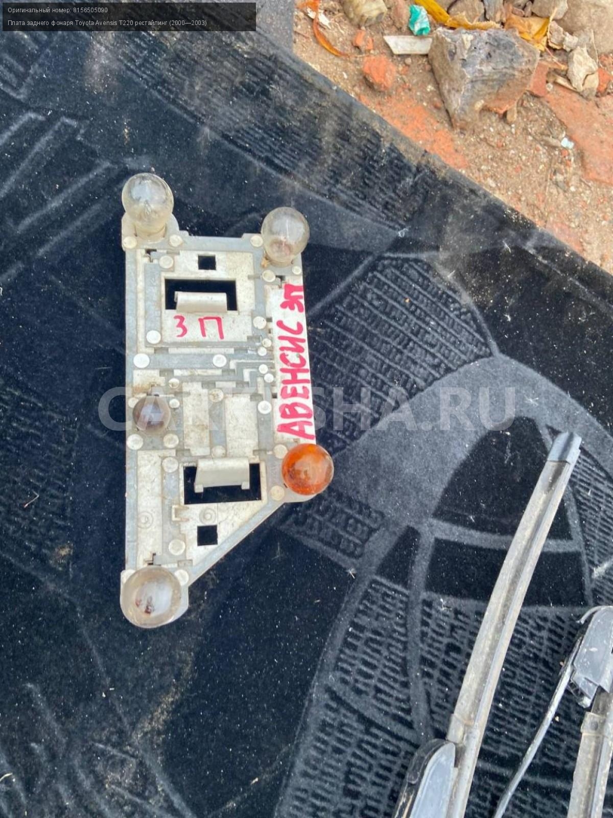 Toyota Avensis T220, седан, плата заднего фонаря.\nАртикул: 3612\n\nОриг. номер: 8156505090\nПроизводитель: TOYOTA\nПримечание:Тойота Авенсис Т 220 , седан , плата заднего правого фонаря, б/у. \n\nМарка: Toyota\nМодель: Avensis T220 рестайлинг (2000—2003)\nГод выпуска: 2001\nКузов тип: Седан\nДвигатель номер: 1ZZ-FE\nМодель двигателя: инжектор\nОбъем: 1.8\nТопливо: Бензин\nКоробка: Механика\nЦвет: Синий\nПраво/Лево: Право\nПеред/Зад: Зад\nСовместимости: Toyota Avensis T220 рестайлинг (2000—2003) 1.8 MT (129 л.с.)\nСовместимость:
