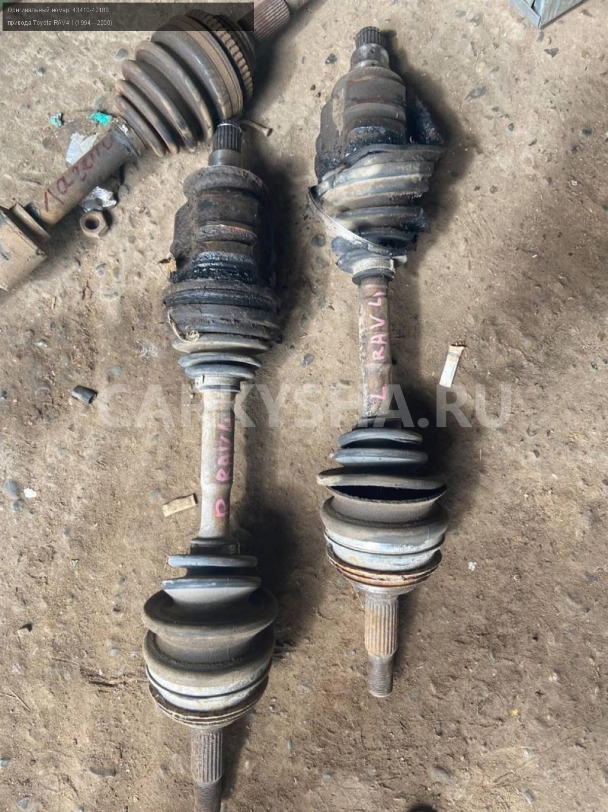 Toyota RAV4 I, привода передние\nАртикул: 2952\n\nОриг. номер: 43410-42180\nПроизводитель: TOYOTA\nПримечание:Тойота рав4 ха10 ,привода передние, б/у, состоянии среднее 6000 пара\n\nМарка: Toyota\nМодель: RAV4 I (1994—2000)\nГод выпуска: 1998\nКузов тип: Внедорожник\nДвигатель номер: 3S-FE\nМодель двигателя: инжектор\nОбъем: 2.0\nТопливо: Бензин\nКоробка: Механика\nЦвет: Черный\nПраво/Лево: Право/Лево\nПеред/Зад: Перед\nСовместимости: Toyota RAV4 I (1994—2000) 2.0 4WD MT (129 л.с.)\nСовместимость: