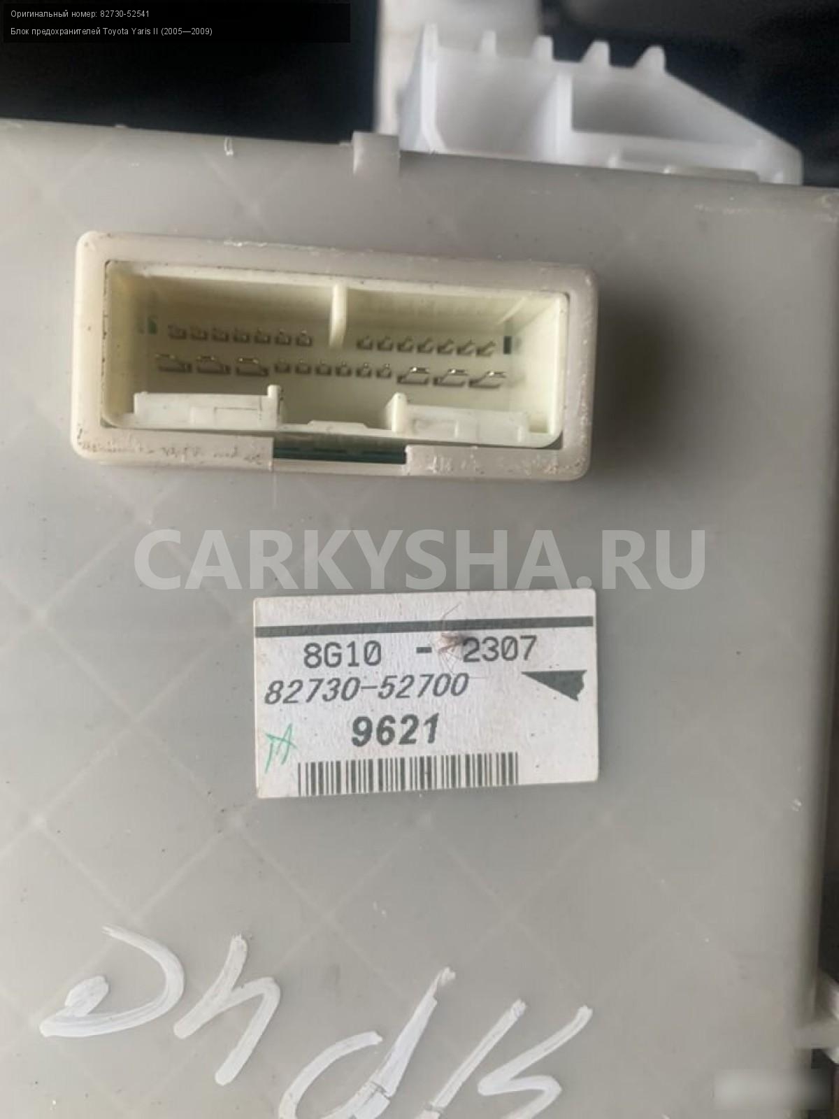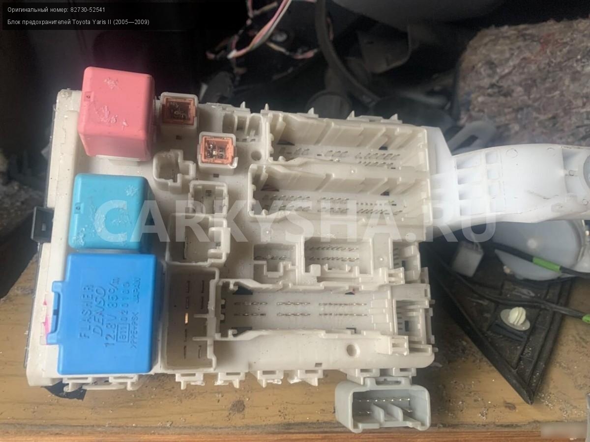 Toyota yaris 2 хр90 блок предохранителей\nАртикул: 821\n\nОриг. номер: 82730-52541\nПроизводитель: TOYOTA\nПримечание:Тойота Ярис 2 1.3 , 2SZ блок предохранителей бу, а так же множество авто в разборе, работаем с регионами отправка тк, выкуп авто после ДТП по всей России, отправка тк осуществляется после 100% оплаты, наложенным платежом не работаем стоимость доставки не рассчитываем \n\nМарка: Toyota\nМодель: Yaris II (2005—2009)\nКузов тип: Седан\nОбъем: 1.3\nТопливо: Бензин\nКоробка: Механика\nСовместимости: Toyota Yaris II (2005—2009) 1.3 MT (86 л.с.)\nСовместимость: