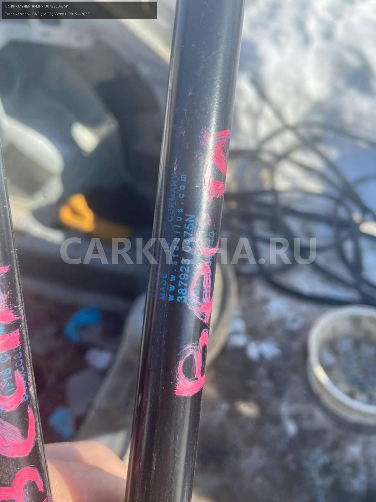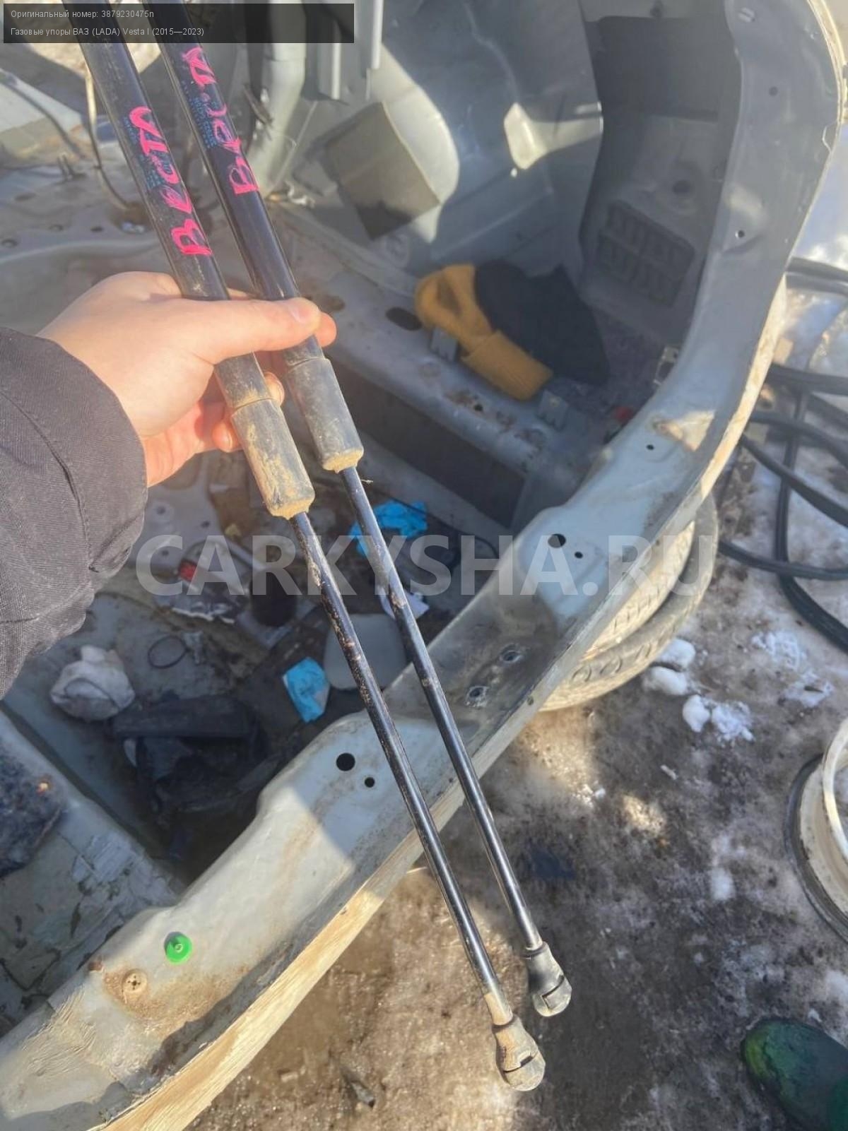 ВАЗ (LADA) Vesta, универсал, упоры багажника.\nАртикул: 4334\n\nОриг. номер: 3879230475n\nПроизводитель: АвтоВАЗ\nПримечание:Ваз(Лада) Веста универсал, упоры багажника, бу, цена за пару. \n\nМарка: ВАЗ (LADA)\nМодель: Vesta I (2015—2023)\nГод выпуска: 2019\nКузов тип: Универсал\nДвигатель номер: 21129\nМодель двигателя: инжектор\nОбъем: 1.6\nТопливо: Бензин\nКоробка: Механика\nЦвет: Серо-Бежевый\nПраво/Лево: Право/Лево\nПеред/Зад: Зад\nСовместимости: ВАЗ (LADA) Vesta I (2015—2023) 1.6 MT (106 л.с.)\nСовместимость: