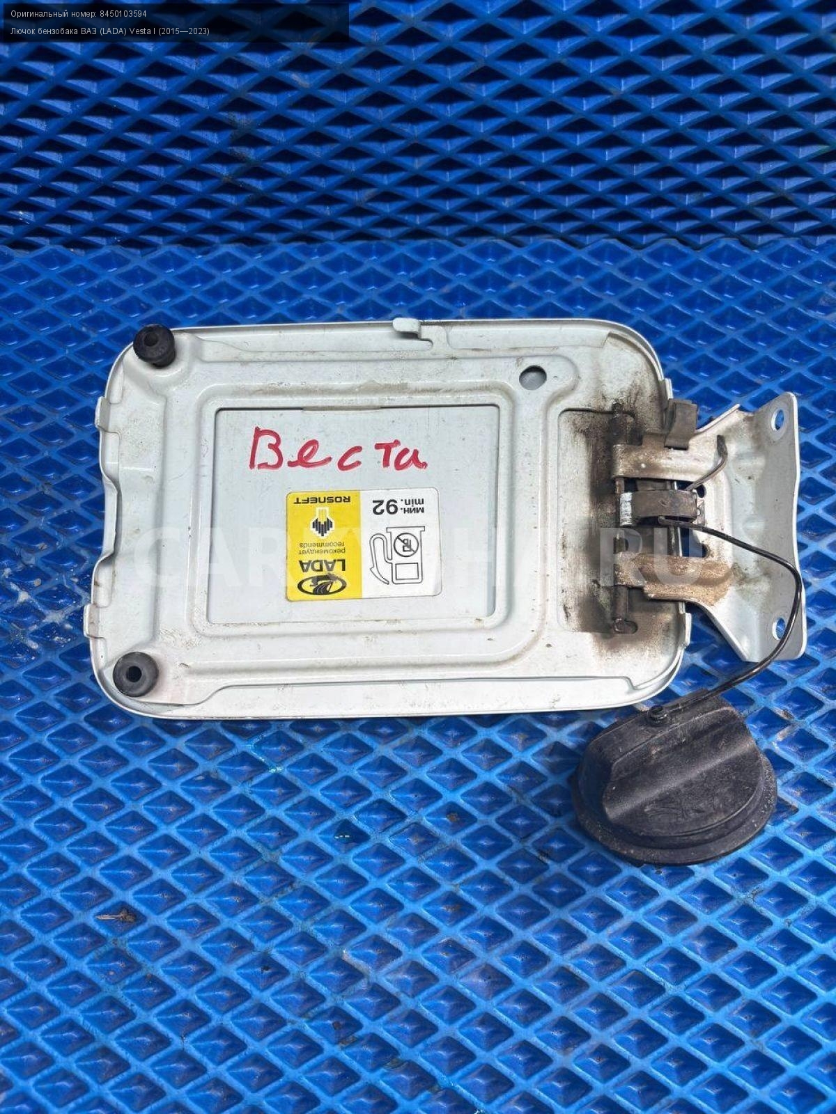 ВАЗ (LADA) Vesta, лючок бензобака.\nАртикул: 8599\n\nОриг. номер: 8450103594\nПроизводитель: АвтоВАЗ\nПримечание:Ваз Лада Веста, лючок бензобака, б/у. \n\nМарка: ВАЗ (LADA)\nМодель: Vesta I (2015—2023)\nГод выпуска: 2017\nКузов тип: Седан\nДвигатель номер: 21129\nМодель двигателя: инжектор\nОбъем: 1.6\nТопливо: Бензин\nКоробка: Робот\nЦвет: Белый\nСовместимости: ВАЗ (LADA) Vesta I (2015—2023) 1.6 AMT (106 л.с.)\nСовместимость: