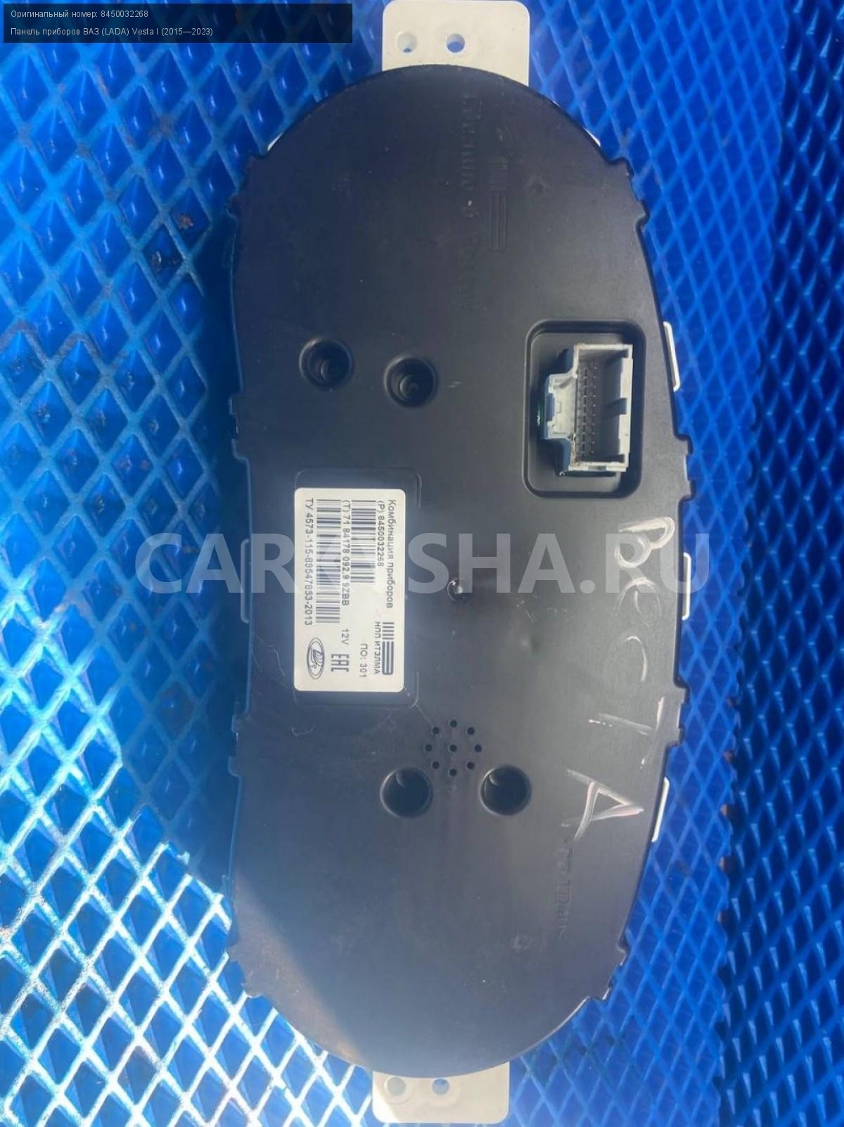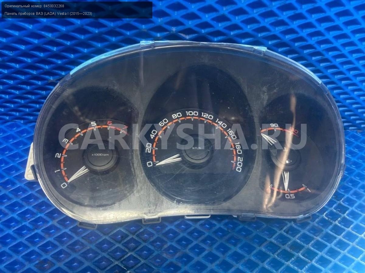 ВАЗ (LADA) Vesta, панель приборов.\nАртикул: 7610\n\nОриг. номер: 8450032268\nПроизводитель: АвтоВАЗ\nПримечание:Ваз Лада Веста, щиток приборов, б/у. \n\nМарка: ВАЗ (LADA)\nМодель: Vesta I (2015—2023)\nГод выпуска: 2019\nКузов тип: Седан\nДвигатель номер: 21129\nМодель двигателя: инжектор\nОбъем: 1.6\nТопливо: Бензин\nКоробка: Механика\nЦвет: Серебристый\nСовместимости: ВАЗ (LADA) Vesta I (2015—2023) 1.6 MT (106 л.с.)\nСовместимость: