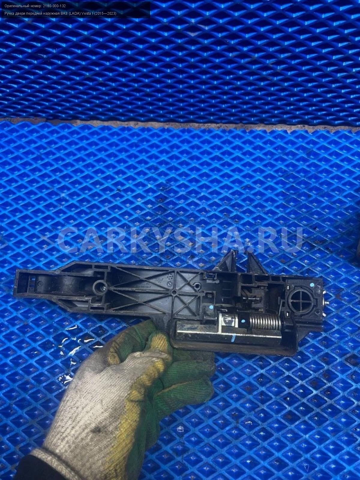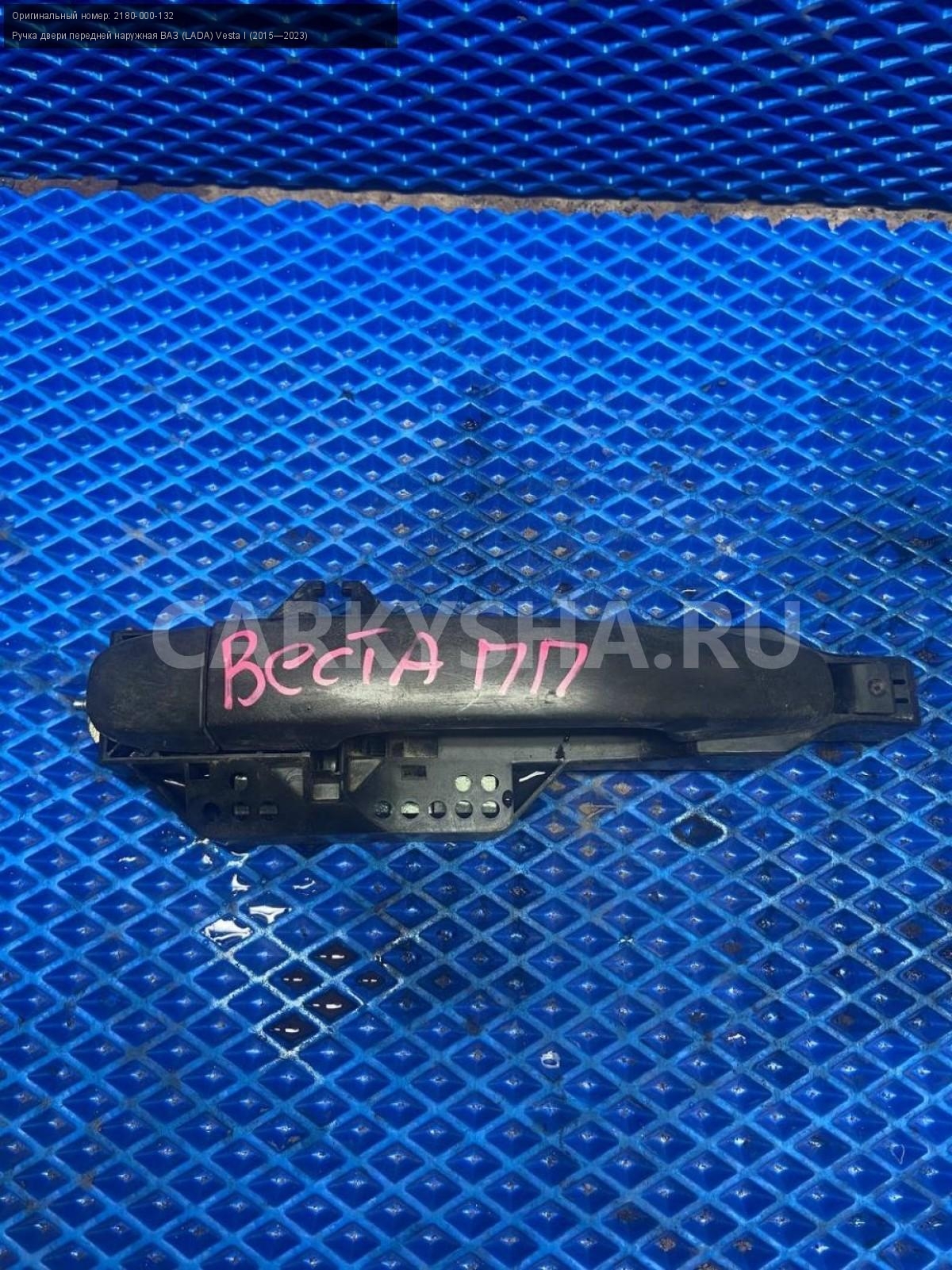 ВАЗ (LADA) Vesta, ручка двери передняя правая.\nАртикул: 7602\n\nОриг. номер: 2180-000-132\nПроизводитель: АвтоВАЗ\nПримечание:Ваз Лада Веста , ручка двери наружная передняя правая, б/у. \n\nМарка: ВАЗ (LADA)\nМодель: Vesta I (2015—2023)\nГод выпуска: 2019\nКузов тип: Седан\nДвигатель номер: 21129\nМодель двигателя: инжектор\nОбъем: 1.6\nТопливо: Бензин\nКоробка: Механика\nЦвет: Серебристый\nПраво/Лево: Право\nПеред/Зад: Перед\nСовместимости: ВАЗ (LADA) Vesta I (2015—2023) 1.6 MT (106 л.с.)\nСовместимость: