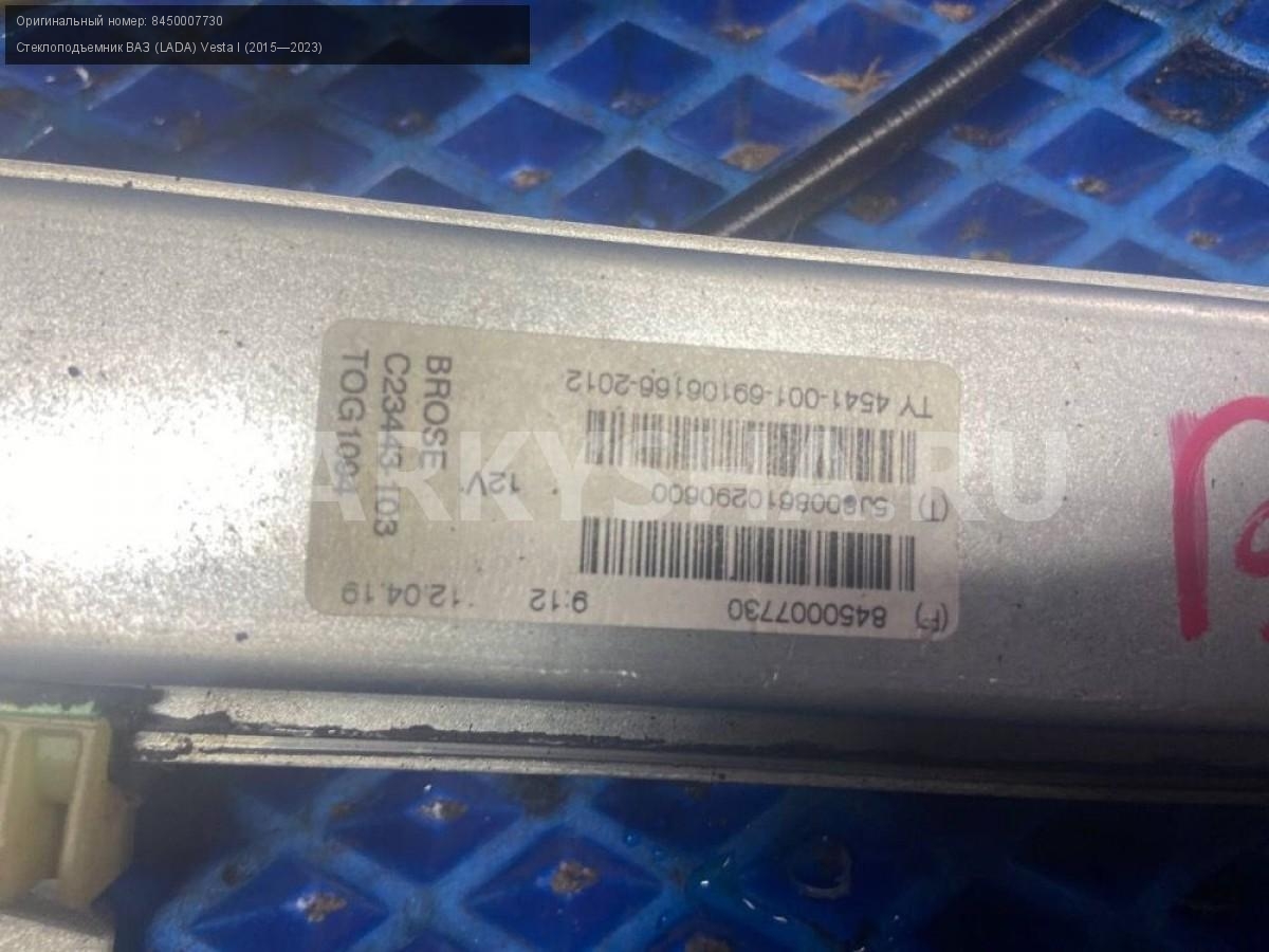 ВАЗ (LADA) Vesta, стеклоподъемник передний правый\nАртикул: 7601\n\nОриг. номер: 8450007730\nПроизводитель: АвтоВАЗ\nПримечание:Ваз Лада Веста , стеклоподъемник передний правый, б/у. \n\nМарка: ВАЗ (LADA)\nМодель: Vesta I (2015—2023)\nГод выпуска: 2019\nКузов тип: Седан\nДвигатель номер: 21129\nМодель двигателя: инжектор\nОбъем: 1.6\nТопливо: Бензин\nКоробка: Механика\nЦвет: Серебристый\nПраво/Лево: Право\nПеред/Зад: Перед\nСовместимости: ВАЗ (LADA) Vesta I (2015—2023) 1.6 MT (106 л.с.)\nСовместимость: