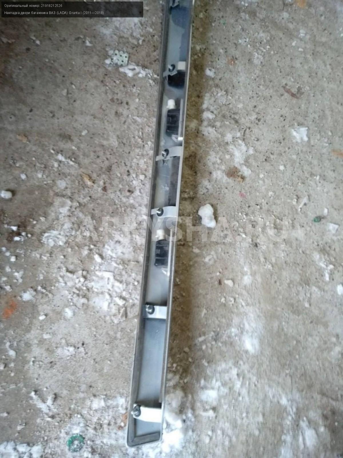 ВАЗ (LADA) Granta лифтбек, накладка крышки багажн.\nАртикул: 6608\n\nОриг. номер: 21918212526\nПроизводитель: АвтоВАЗ\nПримечание:Ваз Лада Гранта лифтбек, накладка крышки багажника, б/у. \n\nМарка: ВАЗ (LADA)\nМодель: Granta I (2011—2018)\nГод выпуска: 2017\nКузов тип: Лифтбек\nДвигатель номер: 11186\nМодель двигателя: инжектор\nОбъем: 1.6\nТопливо: Бензин\nКоробка: Механика\nЦвет: Золотисто-коричневый\nСовместимости: ВАЗ (LADA) Granta I (2011—2018) 1.6 MT (87 л.с.)\nСовместимость: