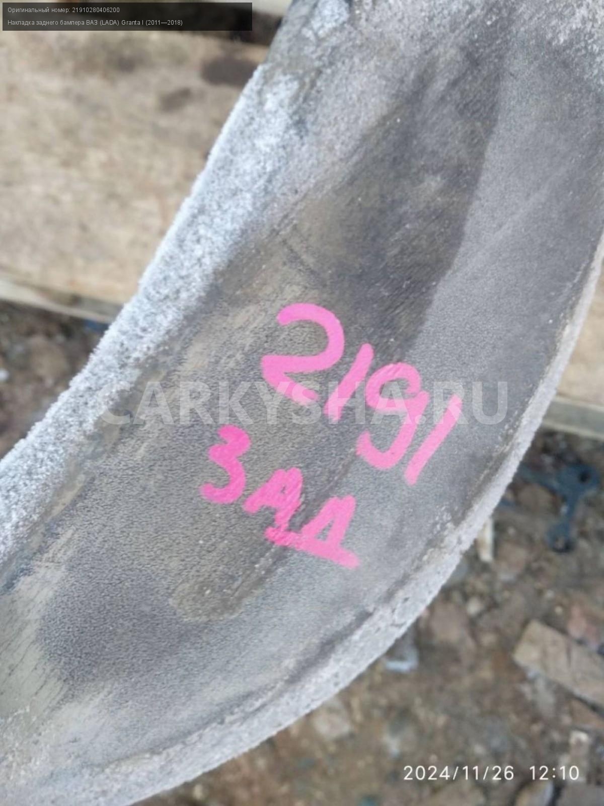 ВАЗ (LADA) Granta лифтбек накладка заднего бампера\nАртикул: 6462\n\nОриг. номер: 21910280406200\nПроизводитель: АвтоВАЗ\nПримечание:Ваз Лада Гранта лифтбек, накладка заднего бампера, б/у. \n\nМарка: ВАЗ (LADA)\nМодель: Granta I (2011—2018)\nГод выпуска: 2014\nКузов тип: Лифтбек\nДвигатель номер: 11186\nМодель двигателя: инжектор\nОбъем: 1.6\nТопливо: Бензин\nКоробка: Механика\nПеред/Зад: Зад\nСовместимости: ВАЗ (LADA) Granta I (2011—2018) 1.6 MT (87 л.с.)\nСовместимость: