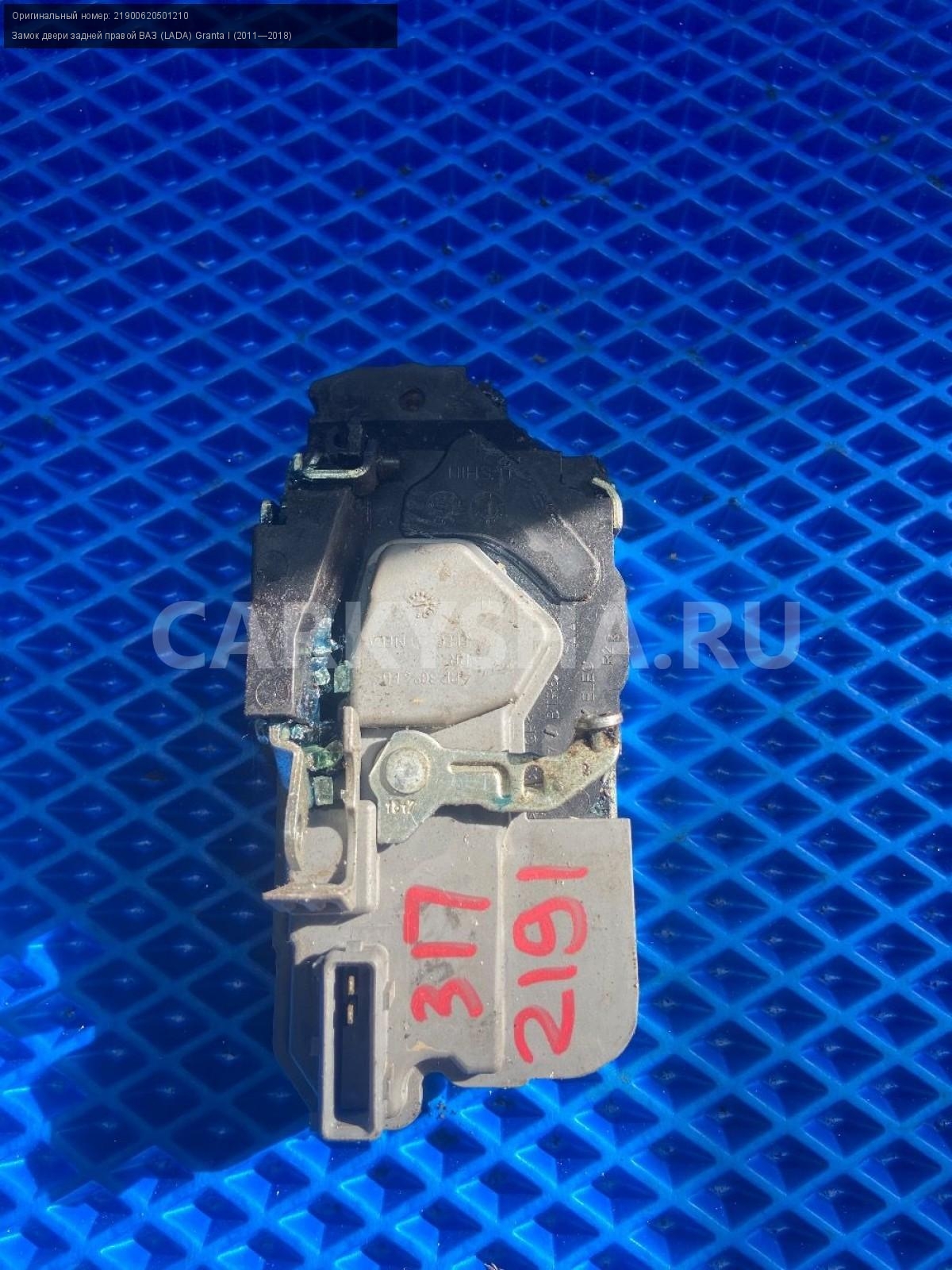 ВАЗ (LADA) Granta, замок двери задней правой.\nАртикул: 6472\n\nОриг. номер: 21900620501210\nПроизводитель: АвтоВАЗ\nПримечание:Ваз Лада Гранта, замок двери задней правой, б/у. \n\nМарка: ВАЗ (LADA)\nМодель: Granta I (2011—2018)\nГод выпуска: 2014\nКузов тип: Лифтбек\nДвигатель номер: 11186\nМодель двигателя: инжектор\nОбъем: 1.6\nТопливо: Бензин\nКоробка: Механика\nПраво/Лево: Право\nПеред/Зад: Зад\nСовместимости: ВАЗ (LADA) Granta I (2011—2018) 1.6 MT (87 л.с.)\nСовместимость: