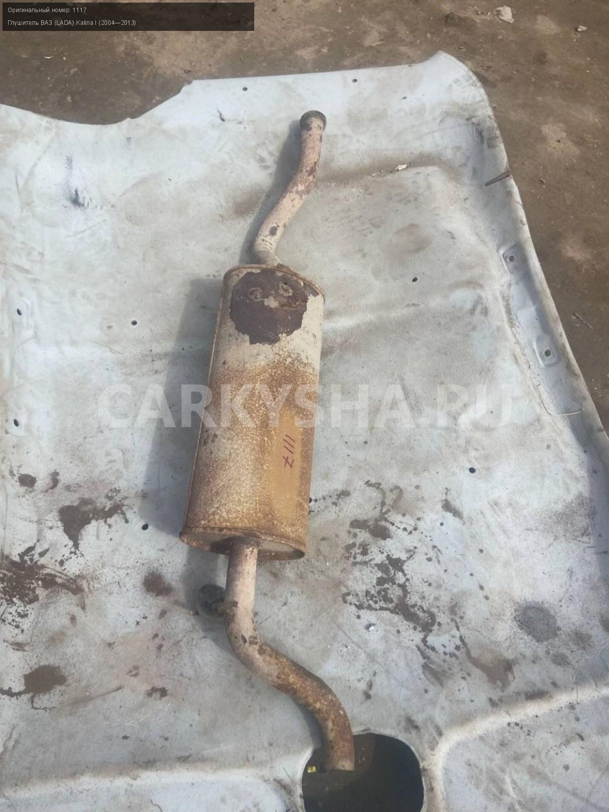 ВАЗ (LADA) Kalina I универс, глушитель задн. часть\nАртикул: 7481\n\nОриг. номер: 1117\nПроизводитель: АвтоВАЗ\nПримечание:Ваз Лада Калина 1 универсал, глушитель задняя часть , б/у. \n\nМарка: ВАЗ (LADA)\nМодель: Kalina I (2004—2013)\nГод выпуска: 2008\nКузов тип: Универсал\nДвигатель номер: 11194\nМодель двигателя: инжектор\nОбъем: 1.4\nТопливо: Бензин\nКоробка: Механика\nЦвет: Серебристый\nПеред/Зад: Зад\nСовместимости: ВАЗ (LADA) Kalina I (2004—2013) 1.4 MT (89 л.с.)\nСовместимость: