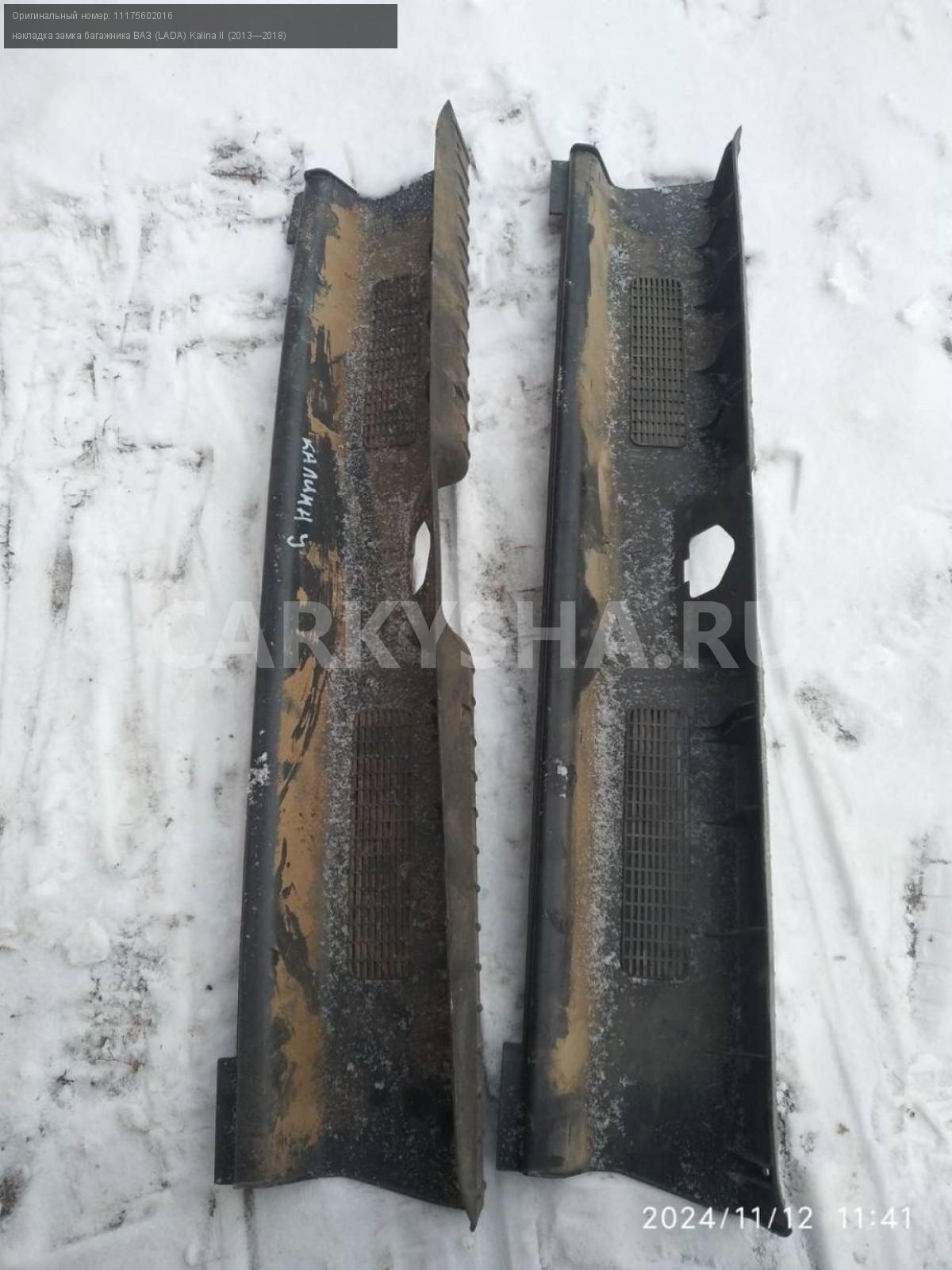 ВАЗ (LADA) Kalina 2 универсал, замковая панель.\nАртикул: 6347\n\nОриг. номер: 11175602016\nПроизводитель: АвтоВАЗ\nПримечание:Впз(Лада) Калина 2 универсал, замковая панель, накладка замка багажника (обшивка порога багажника), б/у. \n\nМарка: ВАЗ (LADA)\nМодель: Kalina II (2013—2018)\nГод выпуска: 2016\nКузов тип: Универсал\nДвигатель номер: 11186\nМодель двигателя: инжектор\nОбъем: 1.6\nТопливо: Бензин\nКоробка: Механика\nЦвет: Черный\nСовместимости: ВАЗ (LADA) Kalina II (2013—2018) 1.6 MT (87 л.с.)\nСовместимость: