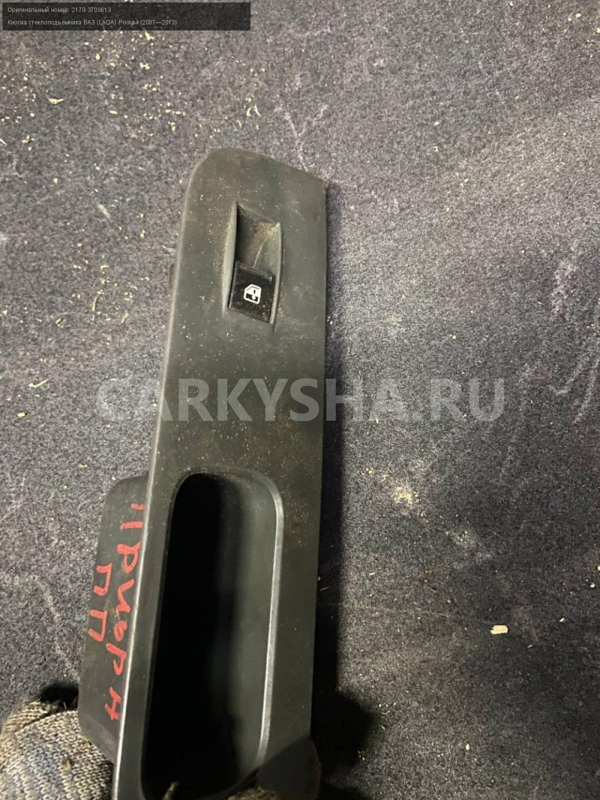ВАЗ (LADA) Priora, кнопка стеклоподъемника п.п.\nАртикул: 3712\n\nОриг. номер: 2170-3709613\nПроизводитель: АвтоВАЗ\nПримечание:ВАЗ(Лада) Приора, кнопка стеклоподъемника передней правой двери, б/у. \n\nМарка: ВАЗ (LADA)\nМодель: Priora I (2007—2013)\nГод выпуска: 2011\nКузов тип: Хетчбэк\nДвигатель номер: 21126\nМодель двигателя: инжектор\nОбъем: 1.6\nТопливо: Бензин\nКоробка: Механика\nЦвет: Белый\nПраво/Лево: Право\nПеред/Зад: Перед\nСовместимости: ВАЗ (LADA) Priora I (2007—2013) 1.6 MT (98 л.с.)\nСовместимость: