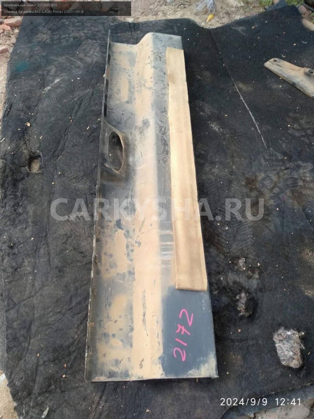 ВАЗ (LADA) Priora, хэтч, обшивка панель багажника.\nАртикул: 5644\n\nОриг. номер: 21725602016\nПроизводитель: АвтоВАЗ\nПримечание:Ваз(Лада) Приора, хэтчбек, обшивка задка багажника, панель багажника, б/у. \n\nМарка: ВАЗ (LADA)\nМодель: Priora I (2007—2013)\nГод выпуска: 2011\nКузов тип: Хетчбэк\nДвигатель номер: 21116\nМодель двигателя: инжектор\nОбъем: 1.6\nТопливо: Бензин\nКоробка: Механика\nЦвет: Сине-черный\nПеред/Зад: Зад\nСовместимости: ВАЗ (LADA) Priora I (2007—2013) 1.6 MT (87 л.с.)\nСовместимость: