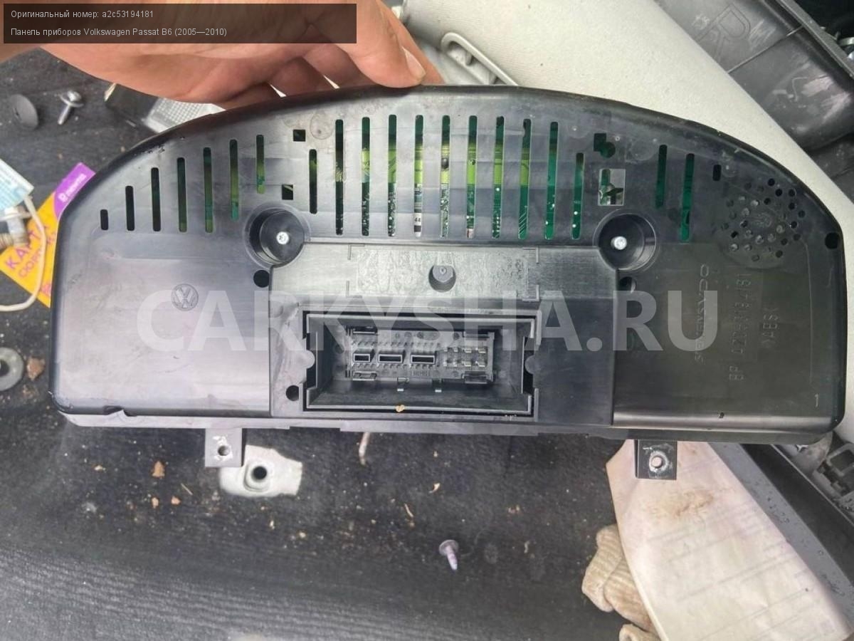 Volkswagen Passat B6, панель приборов\nАртикул: 2788\n\nОриг. номер: a2c53194181\nПроизводитель: VOLKSWAGEN\nПримечание:Фольцваген Пассат Б6, панель приборов , 2,0 турбодизель, б/у\n\nМарка: Volkswagen\nМодель: Passat B6 (2005—2010)\nГод выпуска: 2010\nКузов тип: Универсал\nДвигатель номер: Bmp\nМодель двигателя: турбо-дизель\nОбъем: 2.0\nТопливо: Дизель\nКоробка: Робот\nЦвет: Серебристый\nСовместимости: Volkswagen Passat B6 (2005—2010) 2.0 TDI DSG (140 л.с.)\nСовместимость: