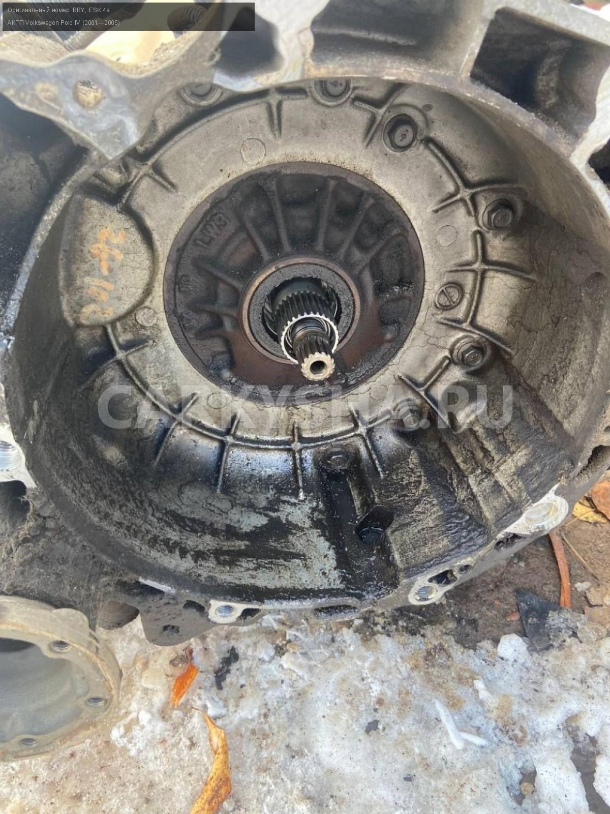 Volkswagen Polo IV, 1,4, АКПП.\nАртикул: 3645\n\nОриг. номер: BBY\nНомера замен: ESK 4a\nПроизводитель: VOLKSWAGEN\nПримечание:Фольцваген Поло 4, 1,4 АКПП (ESK 4a), пробит масляный поддон, б/у. \n\nМарка: Volkswagen\nМодель: Polo IV (2001—2005)\nГод выпуска: 2002\nКузов тип: Хетчбэк\nДвигатель номер: BBY\nМодель двигателя: инжектор\nОбъем: 1.4\nТопливо: Бензин\nКоробка: Автомат\nЦвет: Синий\nСовместимости: Volkswagen Polo IV (2001—2005) 1.4 AT (75 л.с.)\nСовместимость: